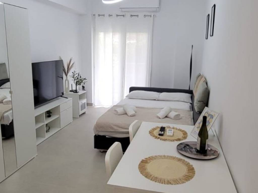 Studio 26 m², 1st floor, located directly on the promenade of Loutraki, with garden view (quiet location). Close to the train station and public parking. Fully renovated and fully furnished, it can be rented also on a short-term basis (Airbnb or holiday rental).
