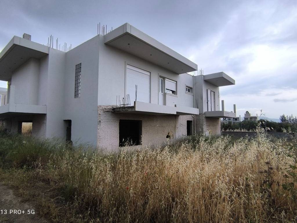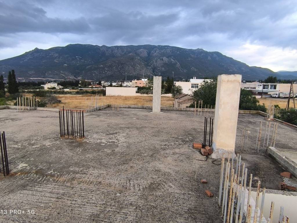 FOR SALE – BUILDING 310 sq.m. ON A PLOT OF 815 sq.m. – QUIET AREA OF LOUTRAKI, CLOSE TO THE CENTER In a quiet and privileged location of Loutraki, just a few minutes from the town center, the casino, shops, and supermarket, a building of 310 sq.m. is available for sale, situated on a plot of 815 sq.m. It features spacious outdoor areas at the front and back, as well as the potential for further construction. Ground floor (155 sq.m.): Concrete structure – can be configured as an independent apartment with private parking or used as storage and parking space. First floor (155 sq.m.): Semi-finished residence with a spacious living room (fireplace pre-installation), kitchen with cabinets, 3 bedrooms (one master with en-suite bathroom), and an additional large bathroom. The property features aluminum window frames, floor tiles in most areas, and pre-installation for heating. Only a few finishing works are required for completion. There is also the possibility of constructing an additional 155 sq.m. on the roof, offering unobstructed mountain and sea views. A property with great potential for a residence, investment, or touristic exploitation.