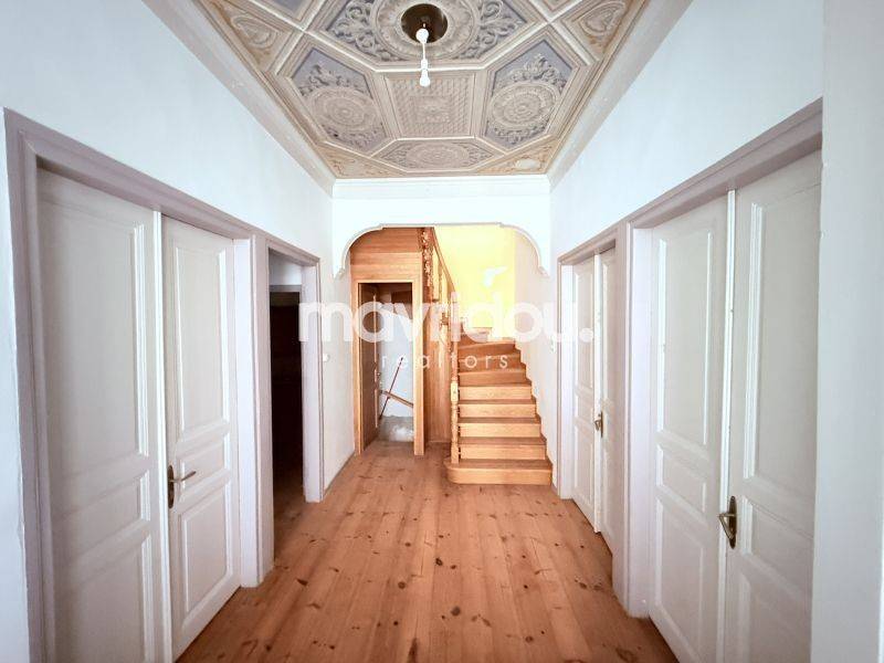 In the heart of the Old Town of Xanthi, in one of the city’s most privileged and historic locations, stands a rare detached residence of exceptional architectural value — a property that embodies authentic aristocratic character, timeless elegance, and refined finesse from a bygone era. Arranged across three main levels, the residence is framed by courtyards both at the front and the rear — a highly uncommon feature in this historic district — offering privacy, tranquility, and abundant natural light, while maintaining a remarkable sense of openness within the urban fabric. The interior reveals spaces of distinguished aesthetics, featuring original wooden floors, symmetrical openings, and architectural details that highlight the quality of construction and careful preservation. Ornately decorated ceilings and refined interior elements create an atmosphere of understated luxury and timeless sophistication. The ground floor comprises three distinct rooms. The two front rooms communicate through an internal door and traditionally host the main reception areas, with the principal living room typically positioned at the façade. An independent kitchen and a bathroom complete this fully functional level. An impressive wooden staircase leads to the upper floor, where a grand open-plan front room dominates the space. With large openings and balconies, it is flooded with natural light and enjoys panoramic views over the courtyard and the city. This area can serve as a magnificent main salon or principal living space. At the rear of the floor there is an additional room, as well as a second bathroom. The residence is further complemented by an attic featuring an additional room — ideal as a private guest suite, office, or secluded retreat — and a basement housing the oil-fired boiler and auxiliary installations. Each level connects harmoniously to create a home of rare continuity, grandeur, and intimacy — a residence that tells a story while remaining fully suited to contemporary high-end living. This is not merely a home, but a truly collectible architectural asset. Ideal as a prestigious private residence, a representative property, or an exceptional boutique hospitality project, it is addressed to discerning buyers seeking authenticity, distinction, and enduring value in one of Greece’s most enchanting historic settings.