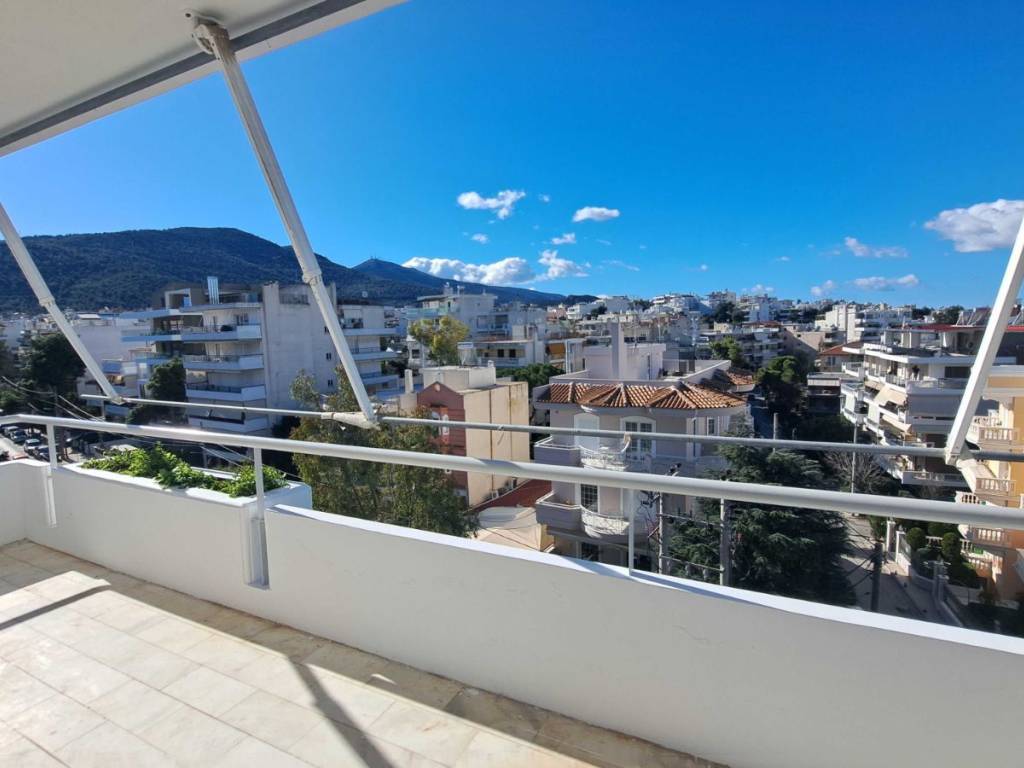 Penthouse apartment for rent on the 5th floor in Agia Paraskevi. It has a living room, 3 bedrooms, 1 bathroom, 1 wc, 1 kitchen. Unlimited view and large terraces. It also has a fireplace and aluminum window frames. The apartment comes with a large parking space (18.40 m²) in an underground garage and a small storage room (3.5 m²). Contact only from private individuals.
