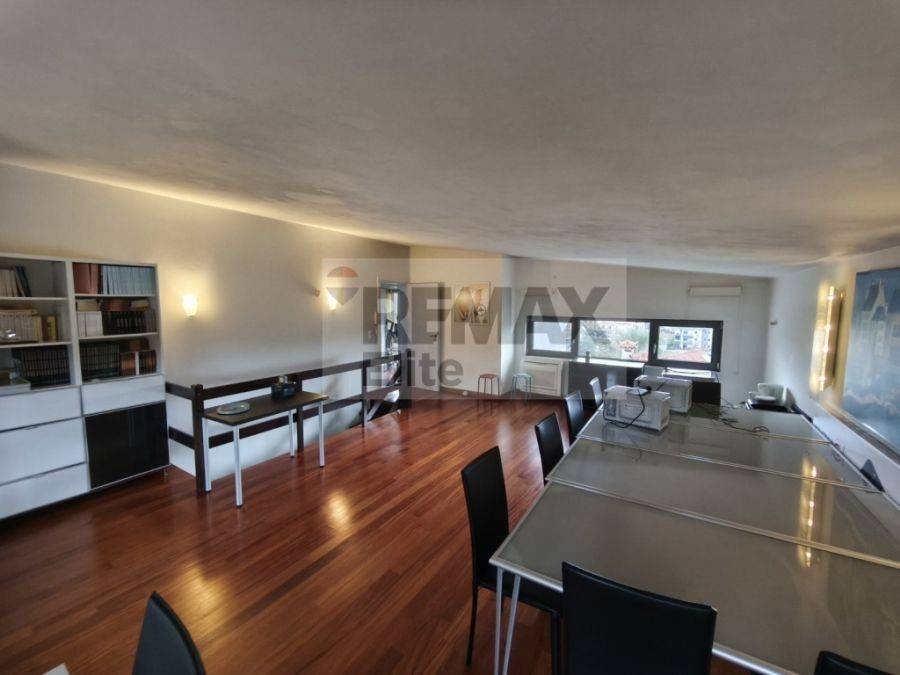 Gerakas: Commercial space for rent with a total area of 130 sq m in excellent condition. It consists of 2 levels (1st and 2nd floor). Each floor has a large office space. The second floor has an additional large room with a balcony, suitable for any use, 1 bathroom and outdoor space. It has aluminum frames, security door, heating with heat pumps, 2 A/C and a garden at the entrance. It is located within walking distance of central axes (Attiki Odos and the Hymettus Peripheral), as well as Ethnikis Antistaseos Street, one of the most central streets of Gerakas. Ideal for housing a company, accounting or insurance office. Rent: €1,300 (Κ91)