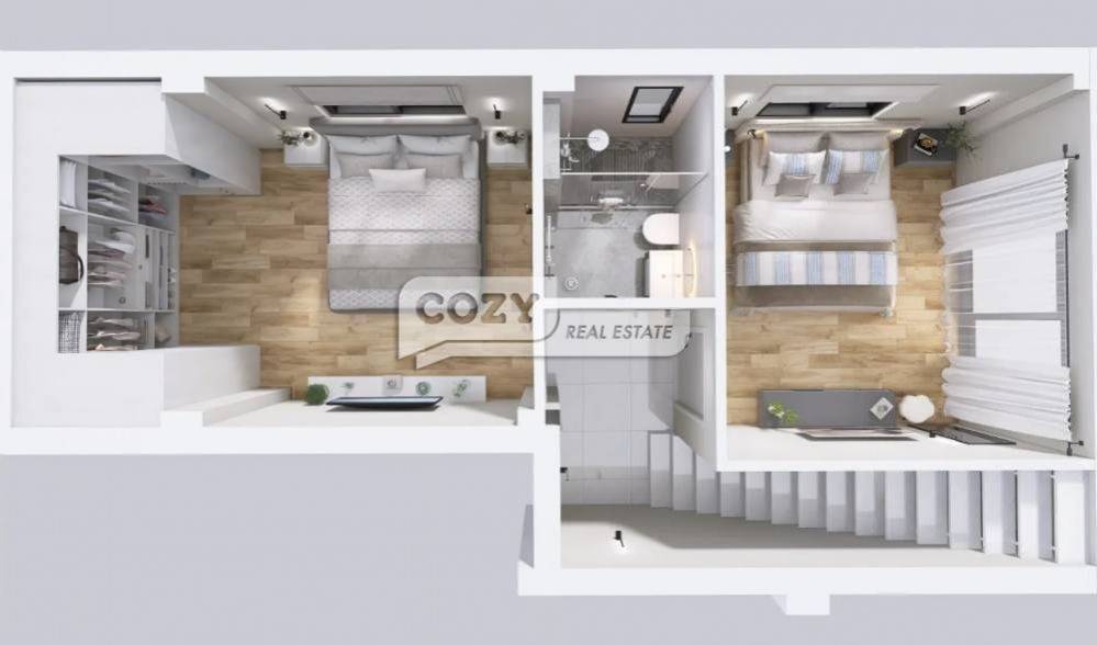 This property develops on 2 levels and features 2 bedrooms, an open kitchen with a living room and a bathroom. It also features 1 wc in total.