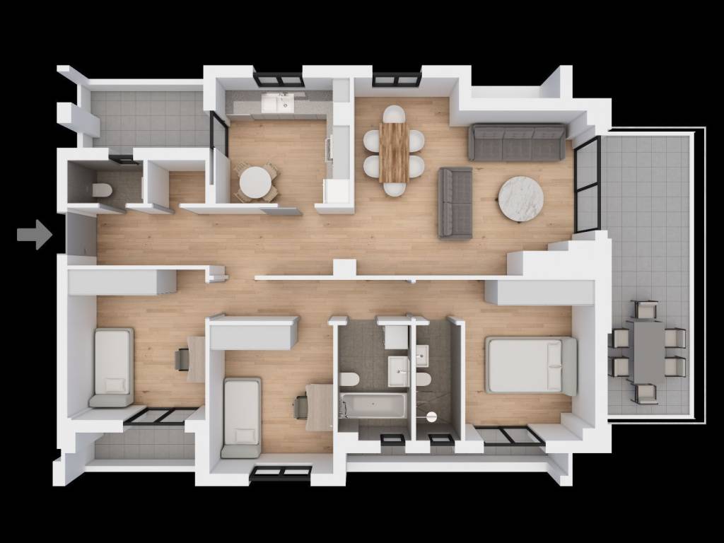 We present to you our new project: an impressive five-story apartment building on pilotis, in an excellent location, very close to the Metro "Agia Paraskevi" (159m) as well as to Agia Paraskevi Square. The proximity to Mesogeion Avenue and the entrances/exits of Attiki Odos is less than 5 minutes away. The area has easy access to local public transportation as well as important public and private educational institutions (ACS College, Pierce & Deree College). These apartments, with surfaces ranging from 51 sq.m. to 210 sq.m., are designed with unparalleled ergonomics and excellent aesthetics. Constructed from top modern materials, they meet the most demanding specifications, offering a space that combines comfort and luxury. Discover your ideal living space! It consists of: • Bright living room with energy fireplace • Dining room • Kitchen • 3 bedrooms, of which 1 is a master with a bathroom • Large verandas • Large storage room in the basement • Parking space for 2 cars Features and amenities: • Security door • Energy frames and windows with energy efficiency certificate • Screens • Wardrobes and kitchen furniture of modern design, high aesthetics, with an emphasis on functionality and excellent construction quality. • Elevator • Plumbing installation with German Rehau systems • Individual natural gas heating • Solar water heater • Video door entry • Alarm pre-installation • Air conditioning pre-installation • Floors: tile & wood