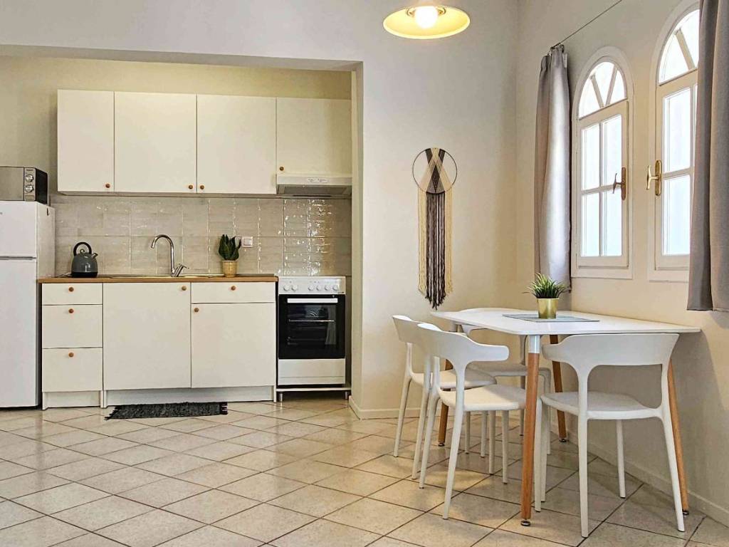 At Perea in a lovely location, just 30 m from the seafront pedestrian. A 55 sqm apartment for rent, fully furnished. On the 2nd floor of a small building. Sunny, bright, lovely furnished with a wide balcony and open view of the beach. Consists of living room with kitchen, 1 bedroom, bathroom. Furnished with quality furniture and equipped with all items that make living comfortable. It has a/c that covers all areas. Price from October to May 650 e/month and minimum lease period: 3 months. Price from June to September 1500 e/month and minimum lease period 1 month. The prices include electricity, water, internet. In case of renting the apartment for 1 year. Prices and terms will be adjusted accordingly. The place where the house, located, has all facilities in a walking distance. Someone can find, supermarkets, fish taverns, restaurants, cafes and entertainment shops that serve the daily needs during the summer. It is 25 km from the center of Thessaloniki. 10 km from Thessaloniki International Airport Perea and the area has beautiful and clean shores (most of which hold the European quality mark, the blue flag) and receive thousands of visitors in summer, enjoying its beautiful, warm and clean beaches.