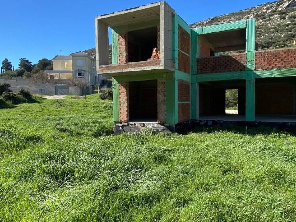 An unfinished residential property is available for sale in the Municipality of Markopoulo Mesogaias, situated on a 602 sq.m. plot in a quiet area with panoramic views over the Mesogeia plain and Athens International Airport. The property consists of three levels with a total surface of approximately 266 sq.m., configured as follows: Basement: 105 sq.m. Ground floor: 105 sq.m. First floor: 56 sq.m. with an additional 25 sq.m. veranda The house is in an unfinished condition, giving the new owner the opportunity to complete it according to their personal preferences and needs. The 602 sq.m. plot offers ample outdoor space with potential for a garden, parking areas, or outdoor leisure spaces. The location combines tranquility with convenient access to key points: 10 minutes from Attiki Odos highway 10 minutes from Athens International Airport 10 minutes from Porto Rafti beach The property is suitable for permanent residence, a holiday home.