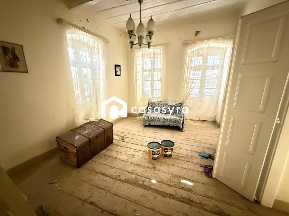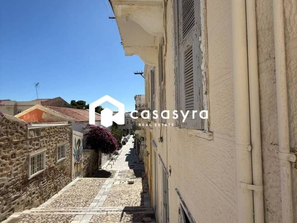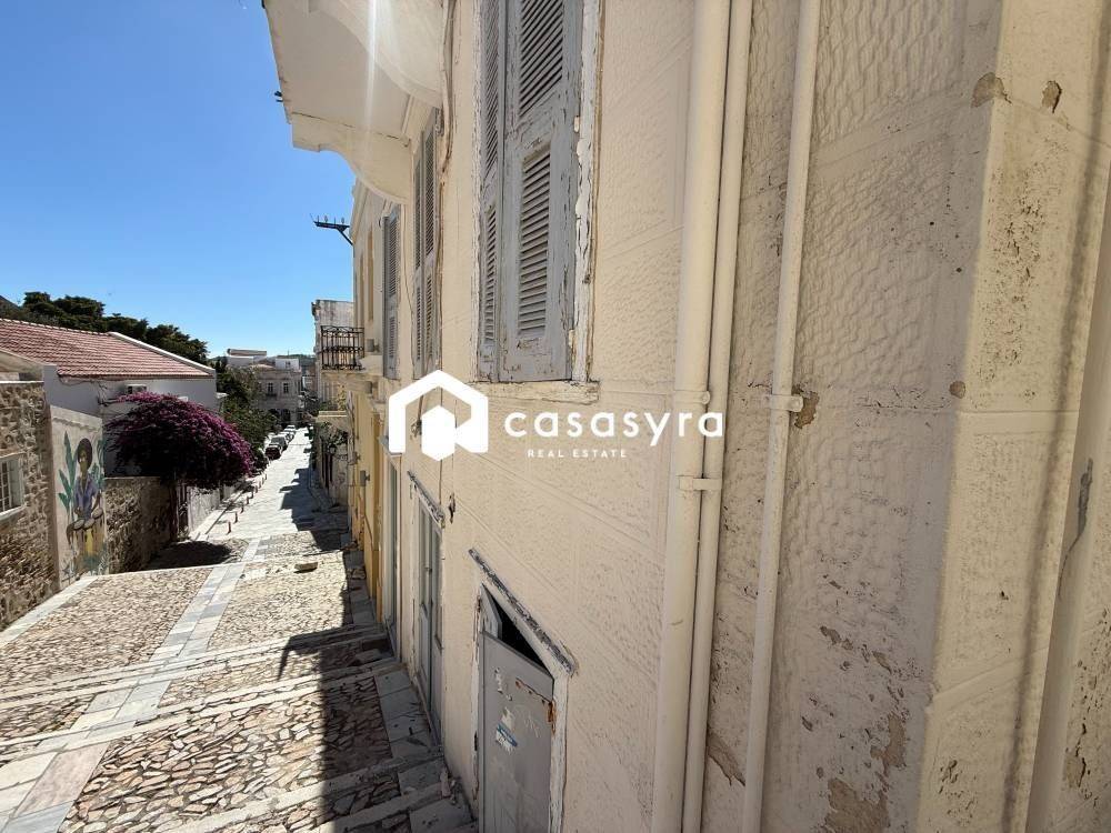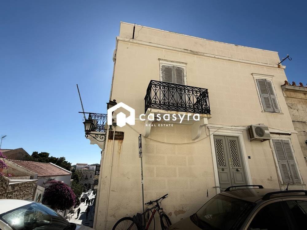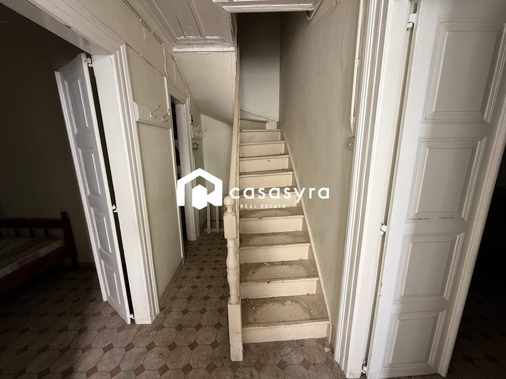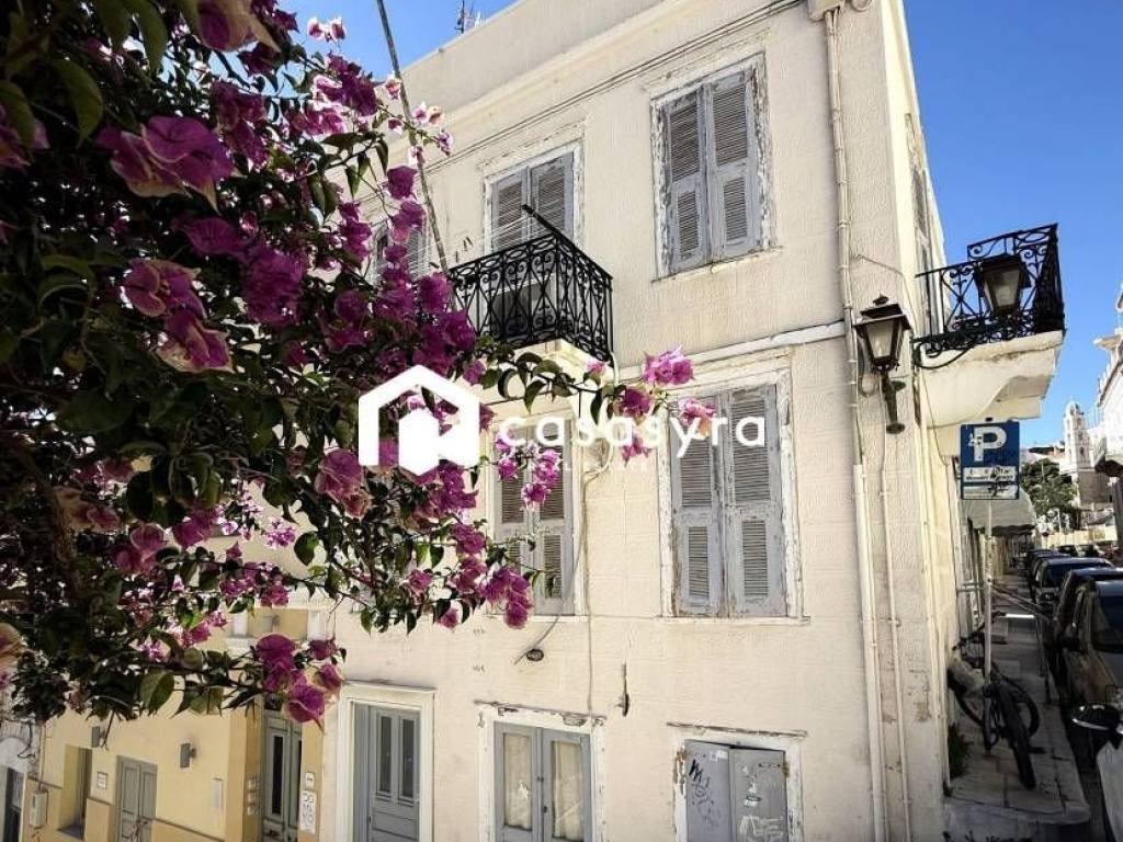 In an extremely privileged location, in the heart of the historic capital of the Cyclades, Ermoupolis and adjacent to its emblematic Miaoulis square, this corner, neoclassical detached house with a total area of 154.65 sq.m. is available for sale and develops as follows: