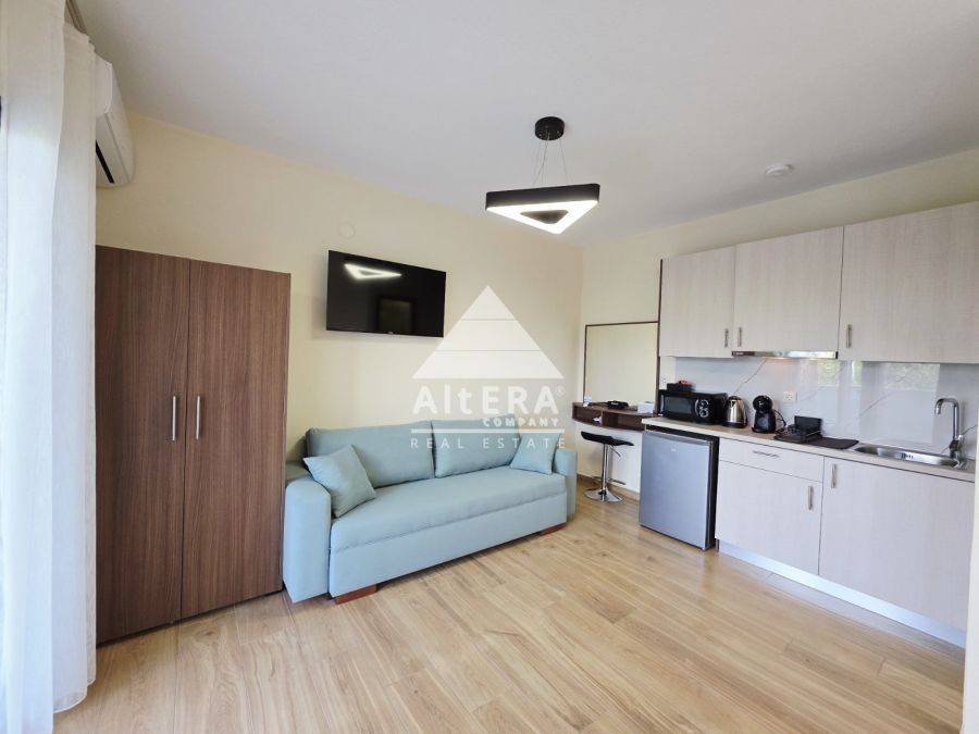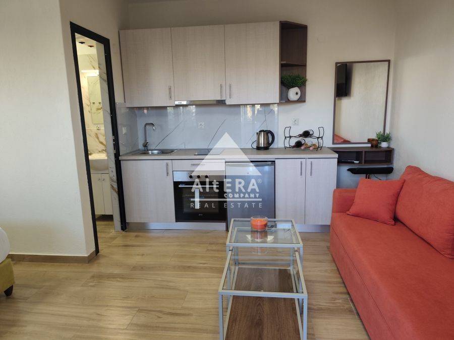 For sale Newly built ground floor Studio in a residential complex in Stavros, a country house just 700 meters from the sea. The studio has an area of ​​25 sq.m. It is fully furnished with all the necessary electrical appliances and air conditioning. It consists of a single space with a living room and kitchen, the space contains a full bathroom and an exit to a shared garden. The property is also ideal for investment use. Price 65,000 euros
