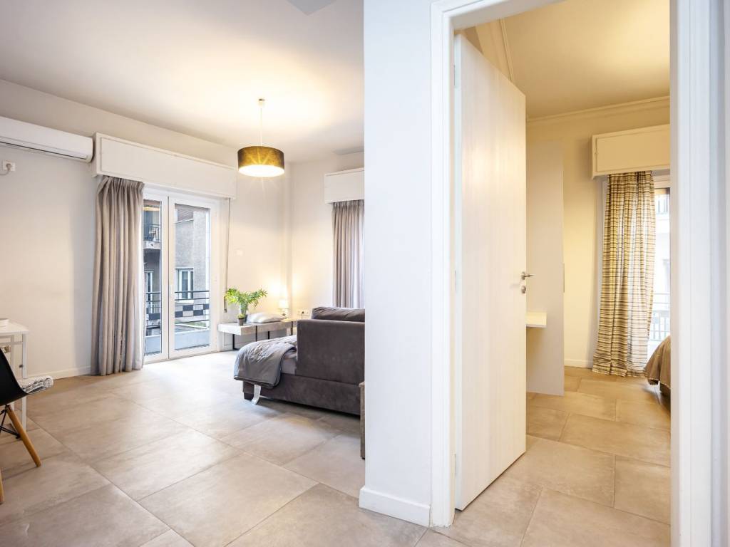 On the 1st floor of a well maintained building with elevator, a fully furnished property is available, thoughtfully divided into two independent residences. Each unit features a living room, fully equipped kitchen with electrical appliances, one bedroom, a modern bathroom and a private balcony. The interiors are functional and renovated, with a neutral aesthetic and contemporary flooring. The property includes air conditioning units, aluminum window frames and complete furnishing, ready for immediate use. The property can be rented: • €800 per apartment separately • €1,500 for both units together It is also suitable for short term rental operation by a company, as it holds two active short term rental registration numbers. An excellent option for combining office and residence side by side, offering flexibility of use in a prime central location. Situated in one of the most strategic areas of Athens, where daily life becomes effortless. The Panathenaic Stadium, Zappeion and the National Garden are just a short walk away, while Syntagma Square and the historic center are easily accessible on foot. At the same time, Pangrati with its vibrant cafés and restaurants enhances the urban living experience. A location that allows you to truly live the city by walking.