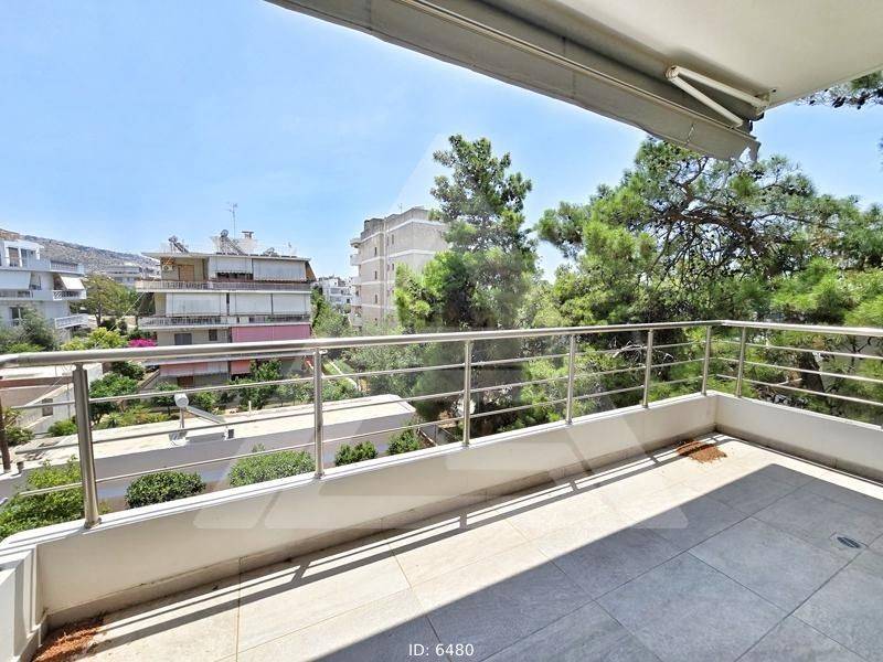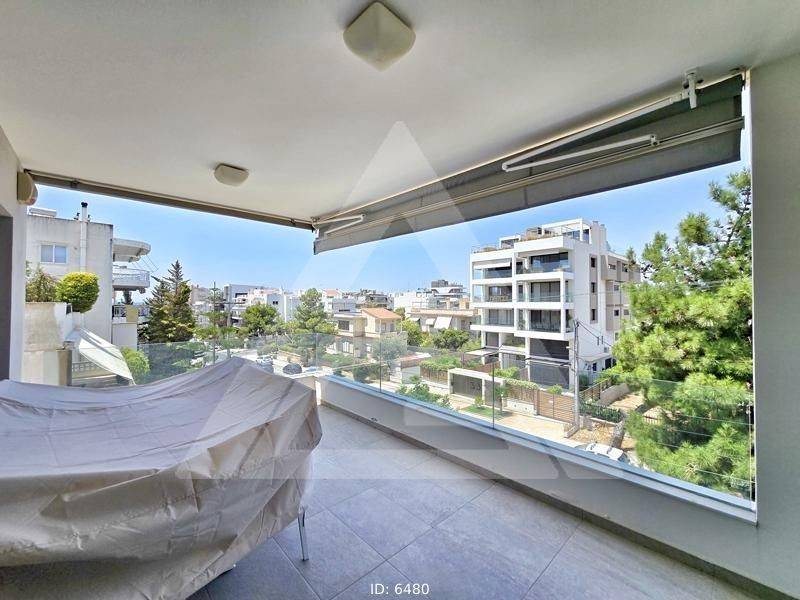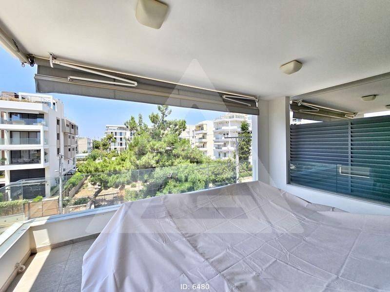Glyfada, Centre - Apartment 107sqm bedrooms 2, levels 1, 3rd, excellent condition, year built 2010, energy class A, living room, kitchen, bathroom, wc, heating type: autonomous (natural gas), air condition, parking covered, quiet, dual aspect apartment, luminous, sea view, frontage, painted, storage space 10sqm, solar heater, balconies, large balconies, balcony 30sqm, tents, elevator, garden, built in appliances, aluminum frames, double glazed windows, door screen, ceramic tiles floors, handicap ramp, secure door, residential zone, access from asphalt.