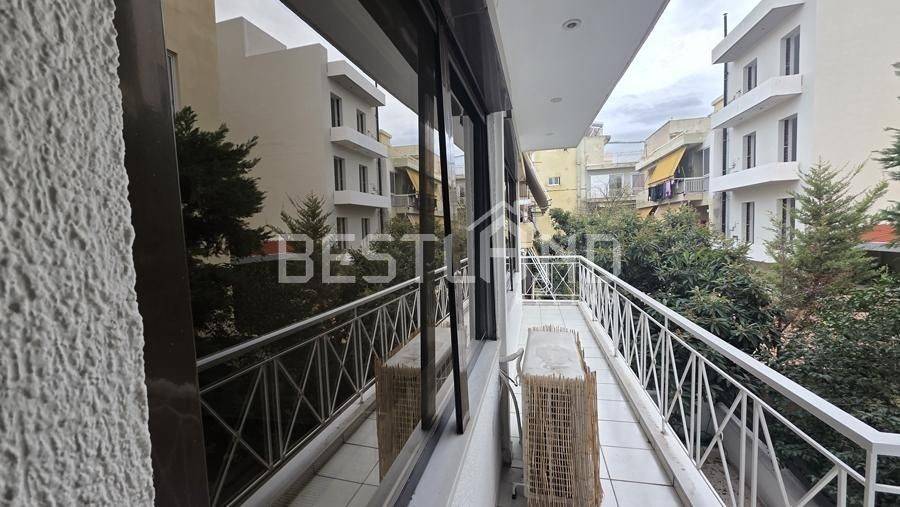 Nea Erythrea, Centre - Apartment 100sqm bedrooms 2, levels 1, 1st, penthouse, good condition, year built 2000, energy class D, living room, kitchen, bathroom, heating type: autonomous (oil), air condition, quiet, dual aspect apartment, luminous, frontage, electric roller shutters, solar heater, fireplace, balconies, large balconies, built in appliances, aluminum frames, double glazed windows, door screen, ceramic tiles floors, without common charges, secure door, residential zone, access from asphalt.