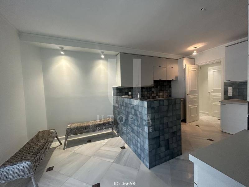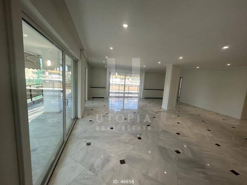 In the most aristocratic corner of Palaio Faliro, just a breath away from the iconic beach, a residence emerges that goes beyond simple living and transforms into an experience of high aesthetics. This property has been renovated with modern specifications, where contemporary architecture meets timeless neoclassical elegance in a perfectly balanced composition. Marble floors, clean lines, and carefully selected details create an atmosphere of discreet luxury that is felt from the very first moment. The reception area hints at the level of the residence, leading to a living-dining room imposing in volume and brightness, designed to host guests with comfort and prestige. The fireplace, elegant and timeless, adds character and warmth, while the overall feeling of the space exudes nobility and absolute harmony. The independent kitchen with a breakfast bar is a space of high functionality and aesthetics, ideal for those who love everyday comfort without any compromise on design. The three bedrooms serve as private suites of tranquility, with generous storage spaces and perfectly organized wardrobes. The master suite is a true personal luxury retreat, with an impressive walk-in closet and a neoclassically inspired bathroom that evokes a spa-like atmosphere, combining a bathtub and shower in a setting of absolute relaxation. The second bathroom, clad in black marble, features more modern, dynamic lines and completes the experience of high aesthetics, while the guest WC serves hospitality needs with elegance. The apartment includes an especially spacious and functional laundry room inside the home, designed to accommodate a washing machine, dryer, and additional equipment, while maintaining the aesthetic and luxury of the space. It is an organized, independent area that ensures practicality without compromising on elegance, ideal for modern daily life. The enormous perimeter corner balconies with uninterrupted sea views function as a private terrace of a luxury residence, a space ideal for lounge seating, dinners under the sky, or moments of relaxation with the Saronic Gulf as a backdrop. The new electric blinds enhance the sense of exclusivity and comfort, transforming the outdoor area into an extension of the indoor living space. The residence is complemented by two exceptionally spacious underground parking spaces and a 20 sqm private storage room. This is a property of rare quality, designed for those seeking a lifestyle of prestige, absolute comfort, and daily contact with the sea.
