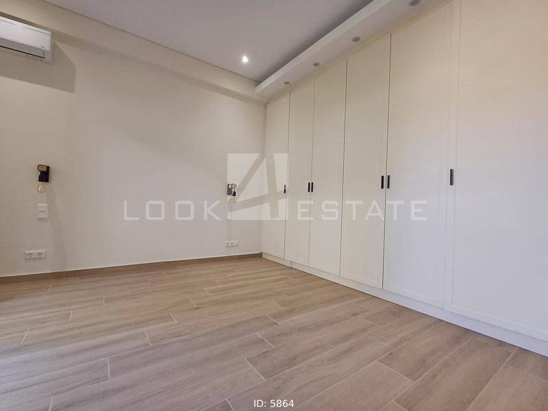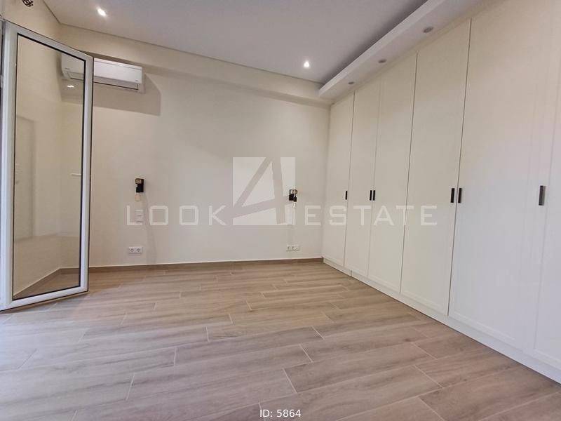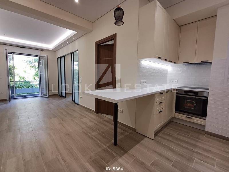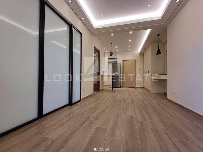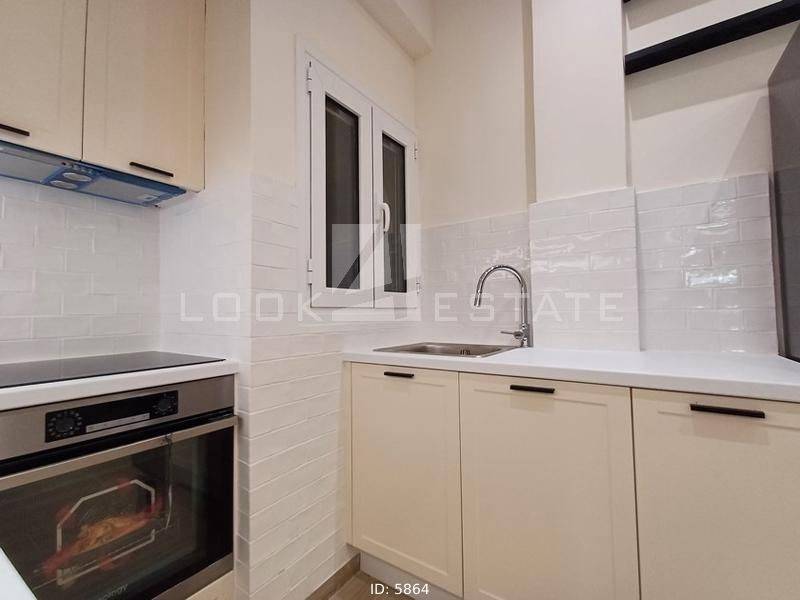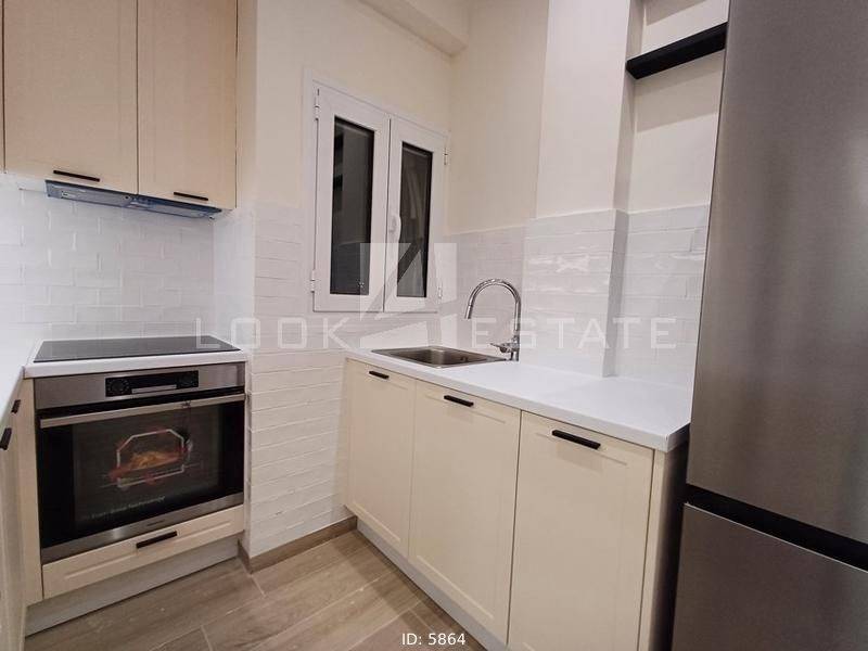 Neapoli Exarchion - Apartment 52sqm unfurnished, bedroom, levels 1, 2nd (52sqm, 1 bedrooms, living room, dinning room, kitchen, wc), fully renovated, year built 1972, renovation year 2024, energy class E, living room, kitchen, bathroom, heating type: autonomous, heating medium air condition, air condition, quiet, luminous, frontage, painted, drop ceiling, electric roller shutters, solar heater, balconies, large balconies, balcony 12sqm, elevator, built in appliances, frames aluminum, double glazed windows, door screen, floor type wood, night electricity discount rate, secure door, alarm, residential zone, western orientation, access from asphalt, close to metro/train (up to 1000m).