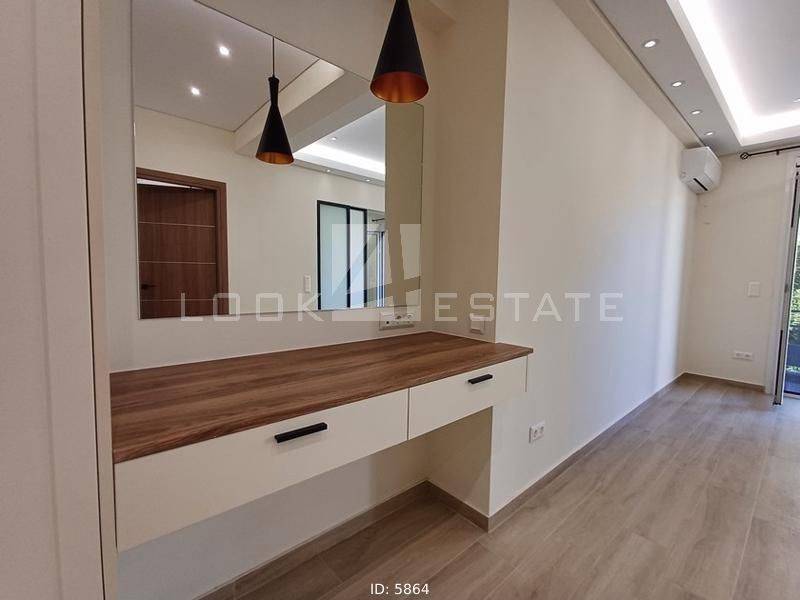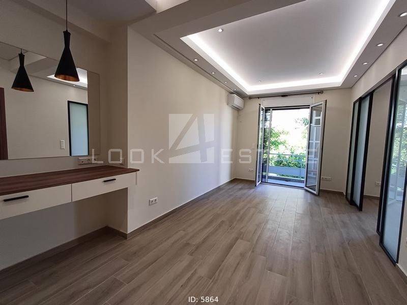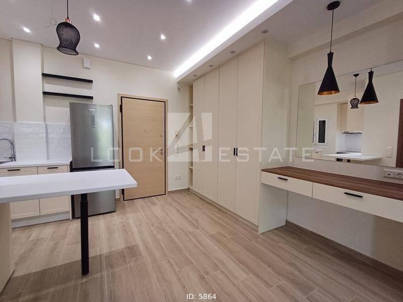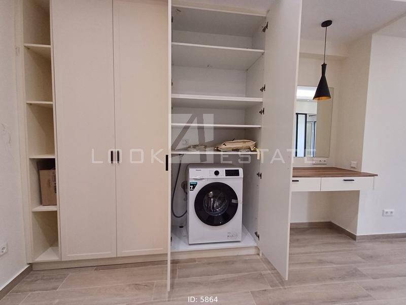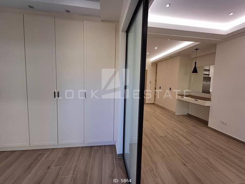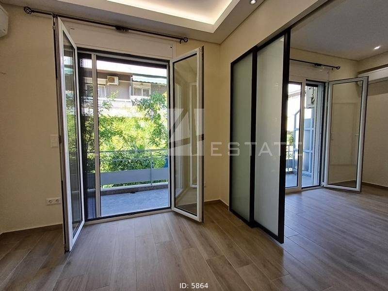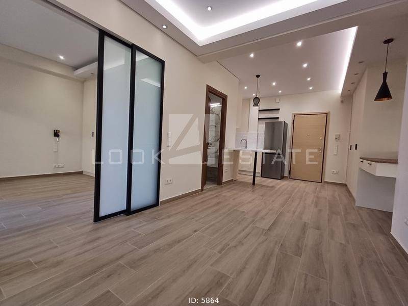 Neapoli Exarchion - Apartment 52sqm unfurnished, bedroom, levels 1, 2nd (52sqm, 1 bedrooms, living room, dinning room, kitchen, wc), fully renovated, year built 1972, renovation year 2024, energy class E, living room, kitchen, bathroom, heating type: autonomous, heating medium air condition, air condition, quiet, luminous, frontage, painted, drop ceiling, electric roller shutters, solar heater, balconies, large balconies, balcony 12sqm, elevator, built in appliances, frames aluminum, double glazed windows, door screen, floor type wood, night electricity discount rate, secure door, alarm, residential zone, western orientation, access from asphalt, close to metro/train (up to 1000m).
