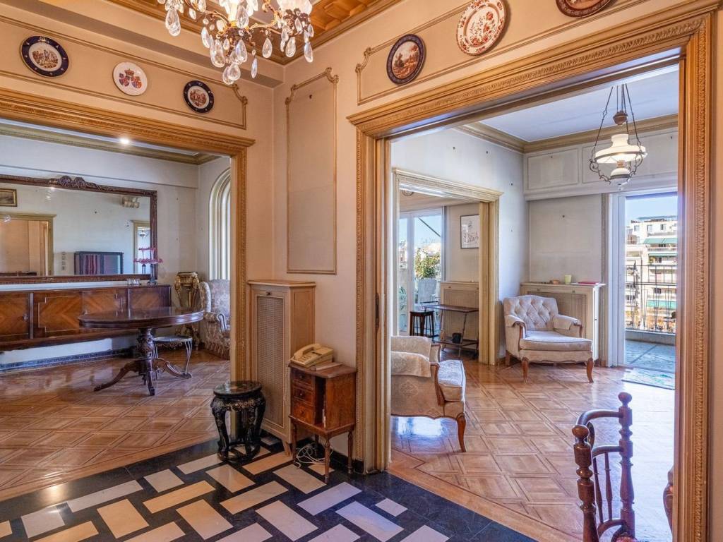A unique 5th floor penthouse in the heart of Mesologgiou square with view in Lycabettus hill spread out in approximately in 138 square meters. It consists living and dining room, separated kitchen, three bedrooms, one bathroom, a guest toilet, a servant's room, a spacious veranda with open view and a nice balcony. Having been constructed on early 1960s it is full of vintage details, such as the style that the marbles and the oak floors are placed, shaping beautiful patterns which were inspired from five-star hotels and others symbolic buildings of that era. Furthermore, its plasterwork gives a classy character while the stained-glass window in the living-room which is made by a famous 1990s artist adds more artistic elements. It features central gas-heating and a small storage room. Location: Pangrati is a vibrant neighborhood in the center of Athens with a rich history and multicultural character. It is located within walking distance from the elegant Kolonaki area, offering easy access to entertainment, cultural, and recreational options. The neighborhood boasts a unique atmosphere with its traditional streets, picturesque squares, and rich culinary scene. Situated just 10 minutes away on foot from the city center, Pangrati is across from the National Garden and behind the Kallimarmaro Stadium. Unique features: Pangrati, also known as Vathrahonisi or the “Island of Frogs” is an emerging creative area filled with traditional cafes, bars, and parks. It maintains the genuine neighborhood feel, providing easy access to schools, supermarkets, galleries, and museums such as the Museum of Modern Art of the Goulandris Foundation. Moreover, it is within close proximity to most attractions in the area. Accessibility: The area enjoys excellent connectivity with the metro, tram, and buses serving the entire Athens area. The airport is approximately a 50-minute journey by train or bus. Investment potential: Pangrati is one of the most sought-after investment locations in central Athens. The dynamic nature of this area is undeniable, with stable returns ensuring the success of your investment.