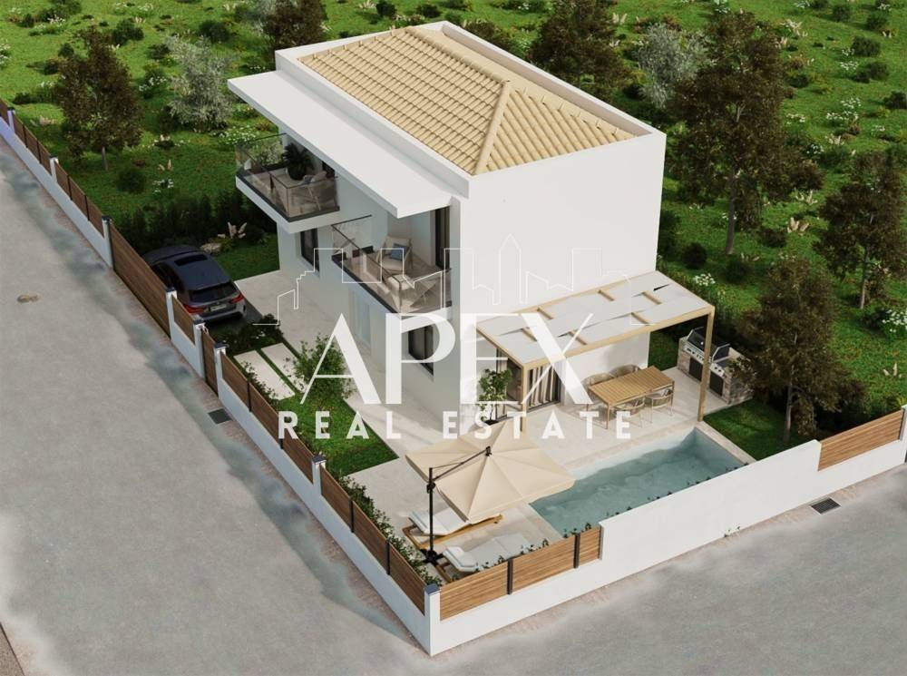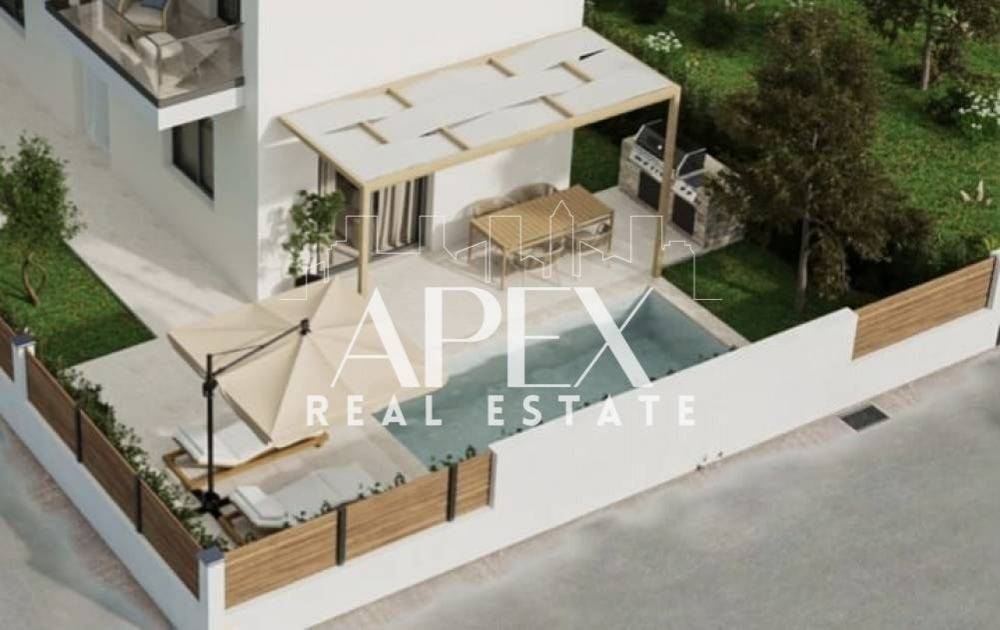 Luxurious newly built detached house, 92sq.m. net, on a 220sq.m. plot, for sale 400m. from the beach. It is developed on two levels, has three spacious bedrooms, two of which are master, a bright open plan kitchen with living room and and three bathrooms. It has a large private garden, a swimming pool, large verandas, air conditioning, solar water heater, armored door, double glazing windows with insect screens and parking space. It is situated in an ideal location, close to supermarkets, shops, beach bars and restaurants.