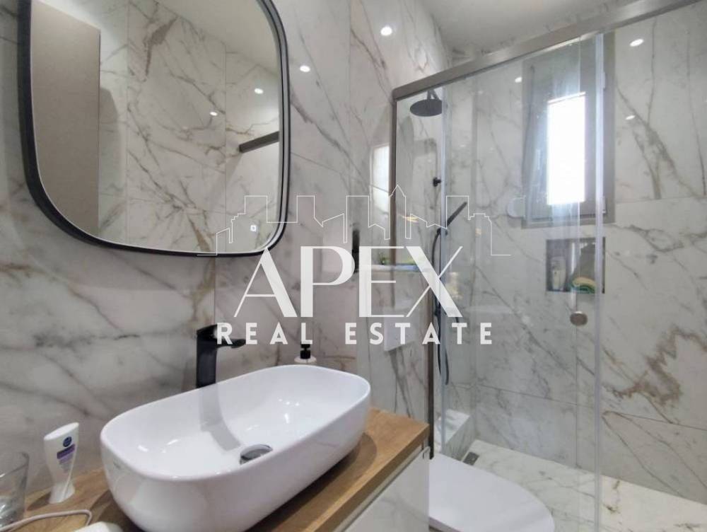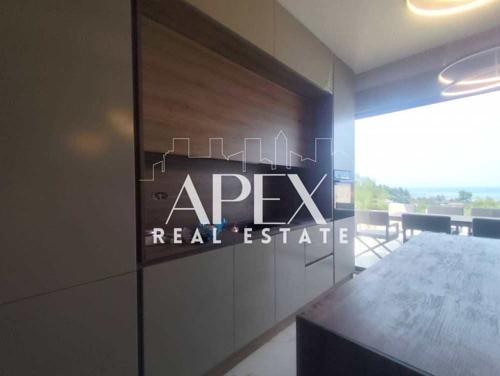 Golden Visa approved. Luxuriously built maisonette of 150sq.m. with sea view, for sale in the area of Polychrono, 700 m. from the beach. It is developed on two levels, has two spacious master bedrooms, one of which has a dressing room, a bright open plan kitchen with living room, three bathrooms and 100sq.m. underground parking - storage room with electric garage door. It is fully furnished, has electrical appliances, verandas, A/C, armored door, double glazing frames and insect screens. It is situated in an ideal location, close to supermarkets, shops, beach bars and restaurants.