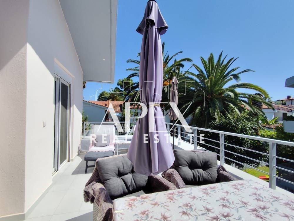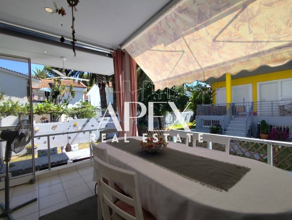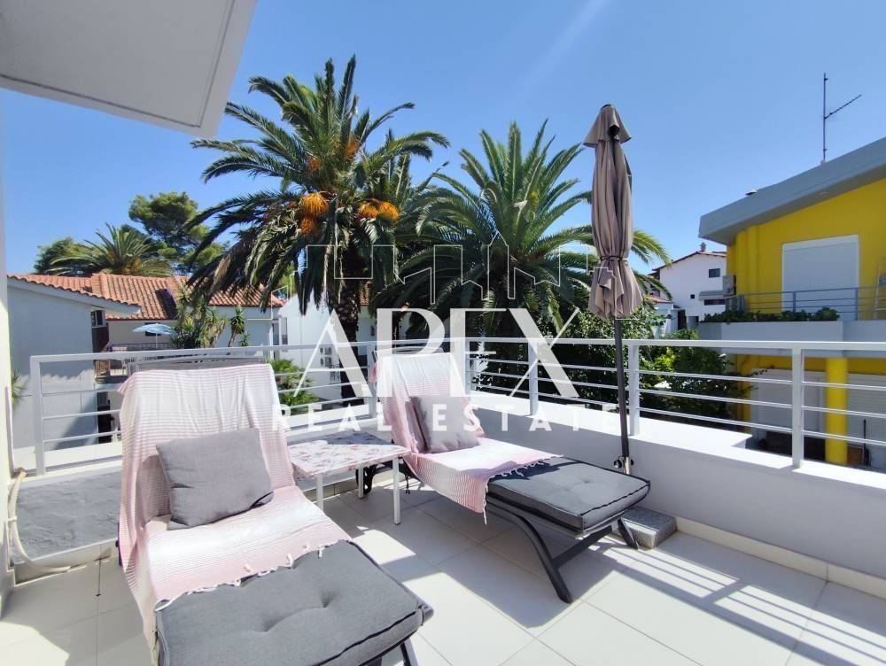 Luxuriously built maisonette of 90sq.m. net, for sale 180m. from the beach. It is developed on three levels and an attic, has four bedrooms, a bright open plan kitchen with living room and two bathrooms. It is fully furnished, has electrical appliances, private garden, verandas, fireplace, A/C, armored door, awnings, double glazing frames with screens, BBQ and an outdoor shower. It is situatedin an ideal location, close to supermarkets, shops, beach bars and restaurants.