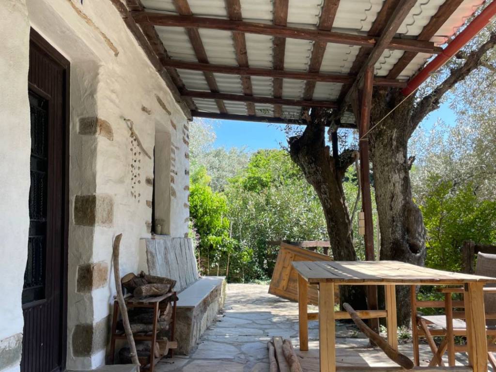 The nature house is situated in a small, green valley overlooking forests and orchards. From the top of the property, there is a sea view. The sea is a 10-minute drive away. The settlement of Vodin, with a few houses and a chapel, belongs to Platanias in South Pelion. Our region is rich in beautiful beaches and secluded coves. This house is highly recommended for those seeking a place immersed in the green Pelion countryside.