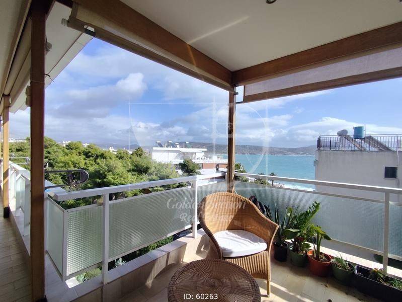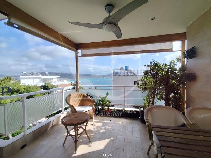 Vari - Apartment 138sqm fully furnished, bedrooms 4, levels 1, 3rd, renovated, year built 1980, energy class C, living room, kitchen, 2 bathrooms, heating type: autonomous (fan coil), quiet, luminous, sea view, frontage, painted, fireplace, balconies, large balconies, elevator, aluminum frames, ceramic tiles floors, secure door, within city plan, residential zone, sea front (1st row), east-southern orientation, access from asphalt, close to sea (up to 100m).