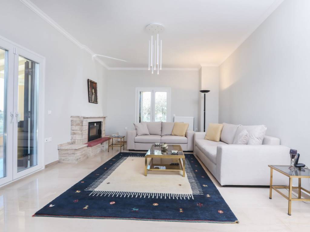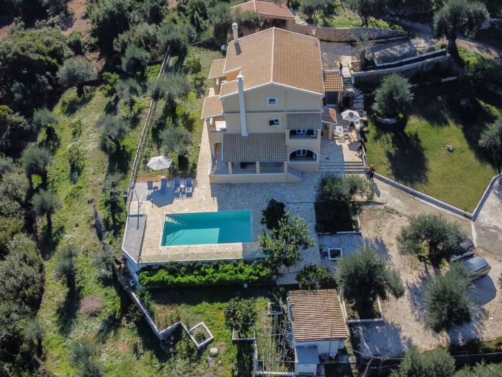Imagine waking up in a villa surrounded by nature, beginning your day by handpicking fresh fruits from the garden before enjoying breakfast and a refreshing swim in your private pool — all while taking in the beautiful views stretching toward Corfu Town. Set in a lush, green landscape among age-old olive trees, this high-end villa offers the perfect balance of privacy, elegance, and connection to nature. Located in Korakiana, one of Corfu’s most traditional and picturesque villages, the property is fully enclosed and accessed through a private entrance, ensuring a sense of seclusion and tranquility. The residence measures 399 sqm and sits within a plot of 6,443.42 sqm, surrounded by exquisitely landscaped gardens that remain vibrant year-round. The grounds are home to a variety of fruit trees, reflecting the abundance of nature in every season. At the heart of the estate lies a stunning swimming pool framed in natural stone and enclosed by a modern glass fence — an inviting space for sun-lit relaxation or evening swims under the stars. The stone terrace surrounding the pool is fully furnished, creating a comfortable and welcoming outdoor living area. Architecturally, the villa blends traditional Corfiot elements with modern design, resulting in a home of refined style and functionality. The interior is arranged across three levels, including a spacious attic loft and additional independent living quarters on the ground floor. This level features two bright bedrooms, two fully equipped bathrooms, a large kitchen, and a comfortable living room — ideal for family gatherings. There is also an autonomous suite with one bedroom, one bathroom, a small kitchen with sitting area, and a storage room, offering flexibility and independence. The first floor opens toward Corfu Town and the Old Fortress, offering a magnificent view. It includes three bedrooms, two bathrooms, a large kitchen, a living room with a fireplace, and a dining area — spaces designed for both comfort and entertaining. On the top level, the large attic loft serves as a peaceful retreat. Its open layout and many windows fill the space with natural light, while the balcony highlights the breathtaking panorama — an ideal spot for quiet reflection. This property is an excellent choice for those seeking a high-quality lifestyle in the serenity of the countryside, yet within easy reach of Corfu Town and all modern amenities.