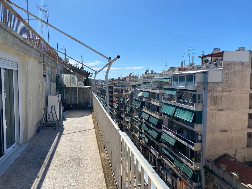 Σπάνιο ρετιρέ γωνιακό ανακαινισμένο οροφοδιαμέρισμα επί της Αγίου Μελετίου και 2 λεπτά από την Πατησίων και την Φωκίωνος Νέγρη σε γωνιακή πολυκατοικία εποχής με ωραία είσοδο και αισθητική (ψηλοτάβανα επίπεδα, πλατειά σκάλα, καλό για την εποχή ασσανσερ) με θέα και "απλωσιά". Περιμετρικά μπαλκόνια- μπορείς να καθήσεις άνετα έξω. 2 Υ/|Δ, 1 μπάνιο, σαλόνι σε τρεις συνεχόμενους χώρους, πλήρως ανακαινισμένη κουζίνα. Χρήζει μερικής ανακαίνίσης. ΜΙα εξαιρετική επιλογή σε ασφαλή περιοχή της περιοχής, μια περπατισιά από την πολύβουη και ζωντανή Φωκίωνος Νέγρη.