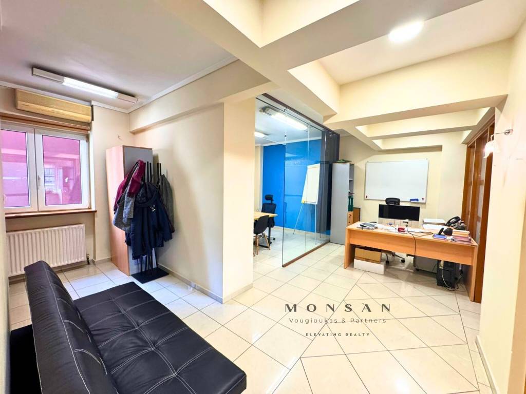 _The address shown on the map is not real, but indicative_ NEAR FREEDOM SQUARE is for rent in a very privileged location, an excellent front office space, well-equipped, bright and airy. It is a professional space with a total area of 90 sq m. gross and 75 sq m. net, located on the 2nd floor (out of 8 floors) with an elevator, of a well-maintained building with easy access (building entrance with only one staircase). The office consists of (4) four work areas and more specifically three closed offices and a reception area. It also has (1) a kitchenette with storage space and (1) a bathroom. The property's windows are equipped with modern energy-efficient aluminum frames with double glazing and shutters, while all the floors are made of very nice tiles. In addition, it offers a complete electrical installation with structured wiring, modern lighting elements in every space, a telephone exchange, pre-installation of an alarm and high-speed fiber optic internet. HEATING - COOLING: The office provides 3 inverter air conditioners for cooling and heating. _ALSO AVAILABLE FURNISHED_ _For the indication of the property, it is necessary to present a police ID and VAT number_ Contact number: 6989 50 20 24