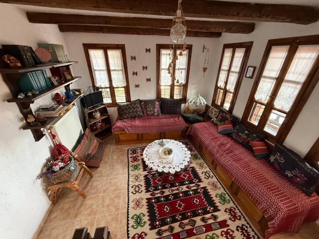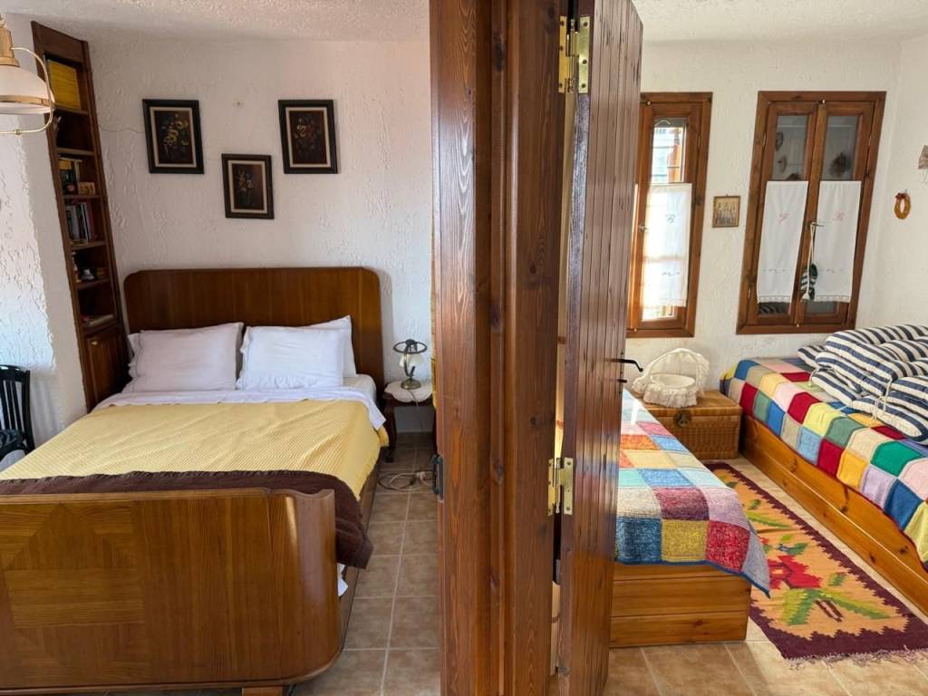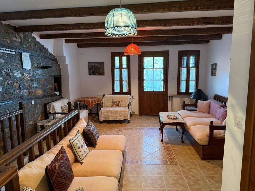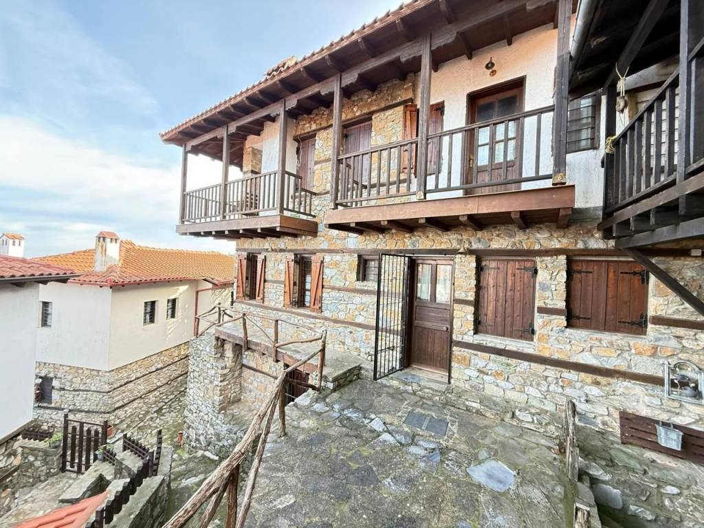 In the traditional settlement of Palaios Panteleimonas, for sale an excellent 2-level detached house of 190,68 m² on the plot of 168 m². The settlement is built at the foot of the Olympus mountain range, at an altitude of 440 m, is a sample of traditional uniform Macedonian architecture, with picturesque alleys, local tourist shops, its central square, with the centuries-old plane trees that adorn the stone village. The reconstruction of the detached house was carried out in 1999, with respect to its original architecture, preserving the local color. The house consists of 2 independent maisonettes that communicate with each other, but they also have separate entrances. 1st maisonette: 110,68 m² Ground floor – spacious living room with fireplace and access to the yard with BBQ area, 1 bathroom 1st floor – 2 bedrooms, living room, 1 bathroom and a 30 m² terrace with panoramic views of the Thermaic Gulf 2nd maisonette: 80 m² Ground floor – kitchen with courtyard access, 1 bedroom, 1 bathroom 1st Floor – 1 bedroom, living room with fireplace and access to the terrace with wonderful sea view, and 1 bathroom Ideal for people looking for a residence, combining architecture, idyllic location and harmonious living in nature!