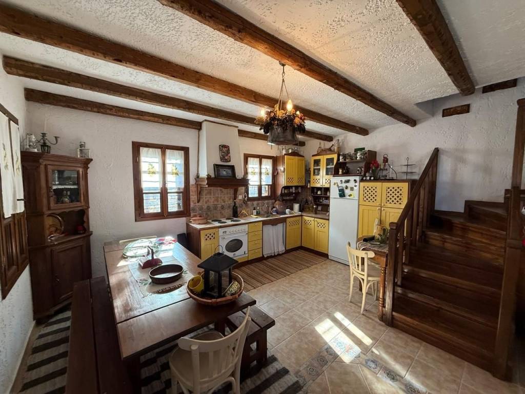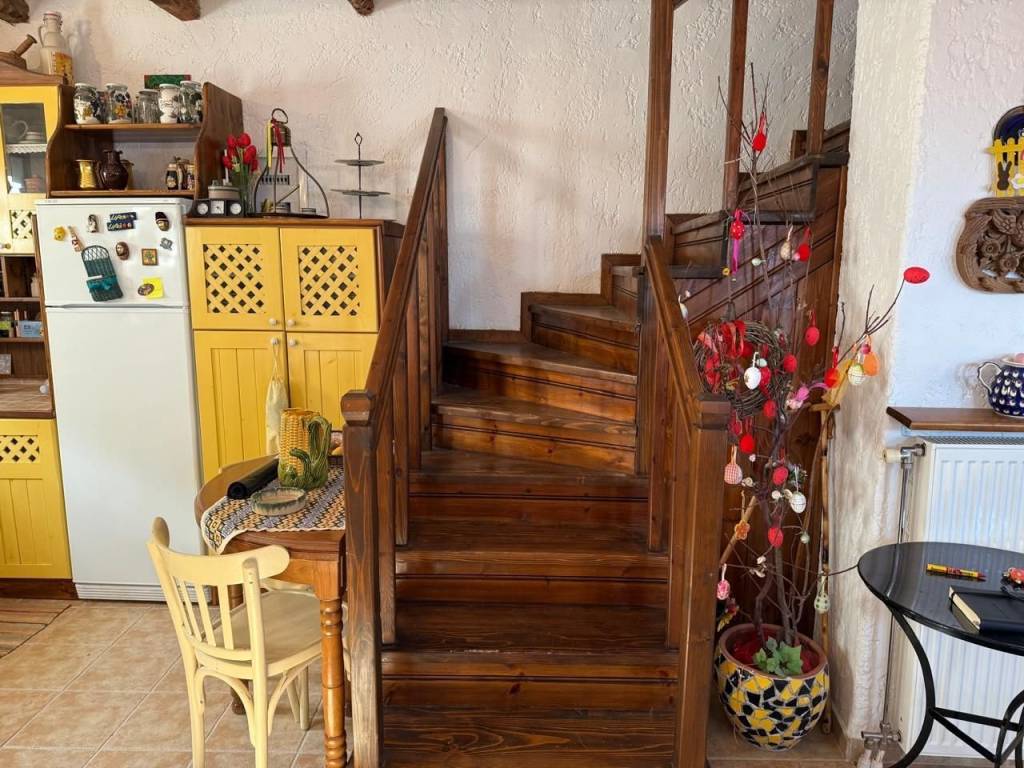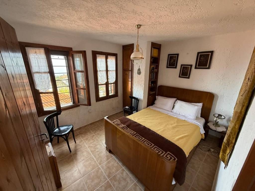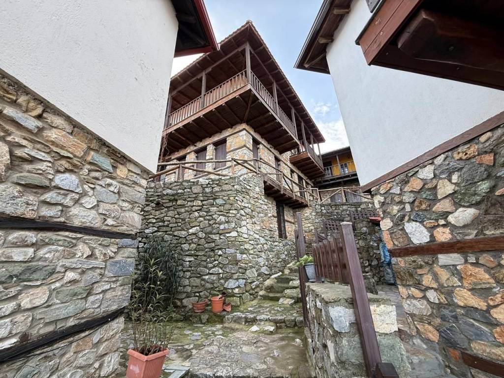 In the traditional settlement of Palaios Panteleimonas, for sale an excellent 2-level detached house of 190,68 m² on the plot of 168 m². The settlement is built at the foot of the Olympus mountain range, at an altitude of 440 m, is a sample of traditional uniform Macedonian architecture, with picturesque alleys, local tourist shops, its central square, with the centuries-old plane trees that adorn the stone village. The reconstruction of the detached house was carried out in 1999, with respect to its original architecture, preserving the local color. The house consists of 2 independent maisonettes that communicate with each other, but they also have separate entrances. 1st maisonette: 110,68 m² Ground floor – spacious living room with fireplace and access to the yard with BBQ area, 1 bathroom 1st floor – 2 bedrooms, living room, 1 bathroom and a 30 m² terrace with panoramic views of the Thermaic Gulf 2nd maisonette: 80 m² Ground floor – kitchen with courtyard access, 1 bedroom, 1 bathroom 1st Floor – 1 bedroom, living room with fireplace and access to the terrace with wonderful sea view, and 1 bathroom Ideal for people looking for a residence, combining architecture, idyllic location and harmonious living in nature!