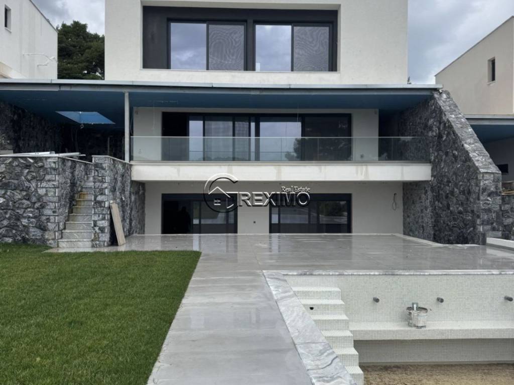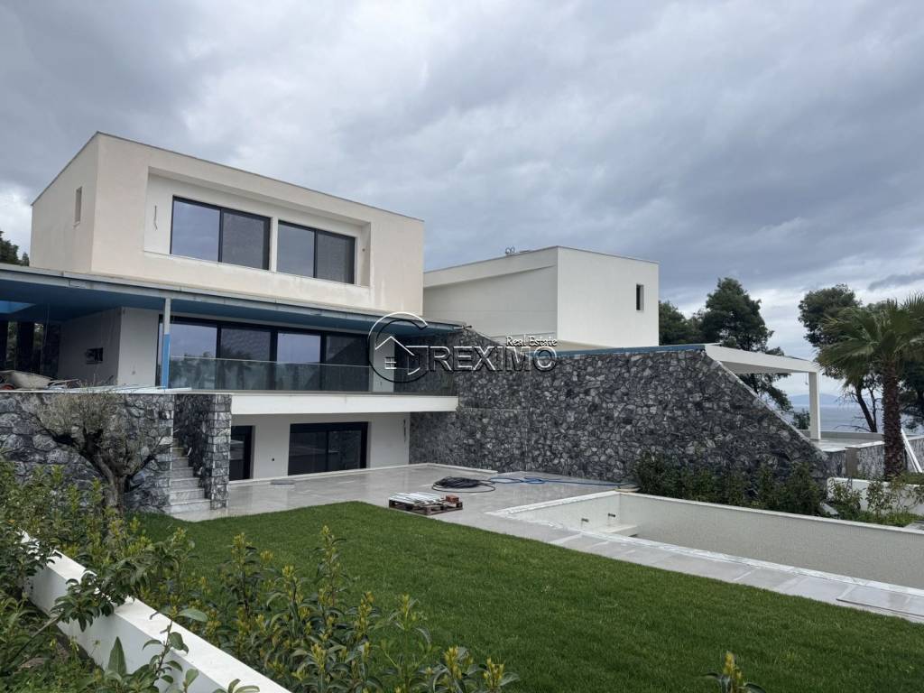5-Bedroom Villa with Private Pool in Pefkochori Prestigious Location in Pefkochori, Kassandra – Among the Most Desirable Properties in Halkidiki Situated in the picturesque area of Pefkochori, in the heart of Kassandra, this luxury sea-view villa presents an exceptional opportunity to acquire premium real estate in Halkidiki. The region is renowned for its crystal-clear beaches, lush landscapes, and consistently strong investment value. Architectural Elegance & Functional Layout Across 180 sq.m. of Refined Living Space Set on an independent 1,100 sq.m. plot, the villa offers 180 sq.m. of sophisticated interior space designed in line with contemporary standards of comfort and style. The five spacious bedrooms, each with its own en-suite bathroom, ensure privacy and functionality, making the property ideal as a family residence or a premium holiday home in Kassandra. High-quality finishing materials, built-in wardrobes, and air conditioning in every room enhance the sense of luxury and year-round comfort. Private Pool & Panoramic Views over the Toroneos Gulf – The Ultimate Seaside Retreat One of the most impressive features of this villa is its outdoor relaxation area with panoramic views of the Toroneos Gulf. The private swimming pool, landscaped garden, and generous outdoor spaces create a sense of exclusivity and tranquility, characteristic of high-end seaside properties in Halkidiki. This residence combines Mediterranean ambiance, abundant natural light, and an elegant living environment, making it highly attractive to discerning buyers. Security, Accessibility & Strong Investment Potential Excellent infrastructure and close proximity to the center of Pefkochori provide easy access to restaurants, shops, and beaches, further enhancing the property’s value as an investment in Greek real estate. Its location in Kassandra — one of the most sought-after areas in Halkidiki — guarantees steady international demand and strong rental return potential. Refined Greek Lifestyle by the Aegean Sea The area offers a unique blend of natural beauty, cultural heritage, and fine gastronomy, transforming every stay into an authentic Mediterranean experience. This is a rare opportunity to own a luxury property with panoramic sea views in Kassandra — a symbol of elegance, serenity, and strategic investment in the Greek property market. Contact us: +30 694 527 5975