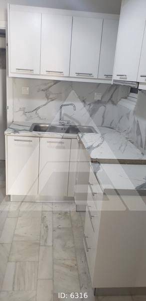 Mousio - Polytechnio - Apartment 111sqm bedrooms 2, levels 1, 4th, renovated, year built 1964, energy class A, living room, kitchen, bathroom, wc, heating type: no heating (air condition), dual aspect apartment, frontage, storage space 4sqm, solar heater, external thermal insulation, balconies, tents, elevator, aluminum frames, double glazed windows, wood floors, separate kitchen, secure door, alarm, residential zone, access from asphalt.