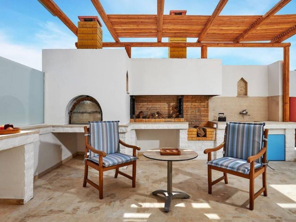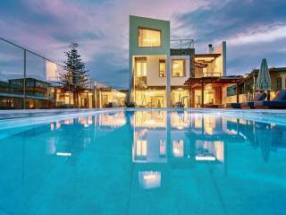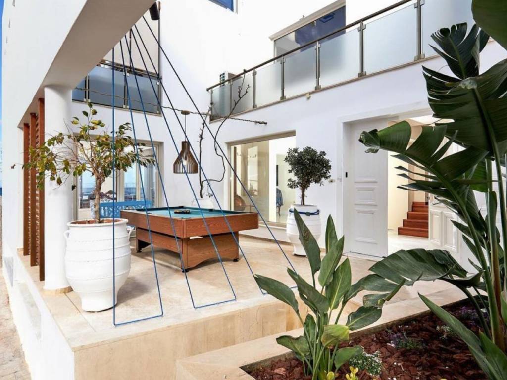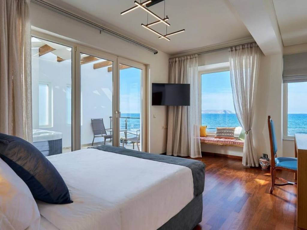 Nestled along the serene coastline of the Heraklion, this exquisite 450 sq.m. seafront villa presents a great opportunity to experience the very essence of luxury Mediterranean living. Just a short 10-minute drive from Heraklion Airport, the property is situated in a vivid location, providing a sense of Community. Heraklion, with its rich history, vibrant culture, and warm hospitality, adds to the charm, offering a unique blend of ancient wonders and modern comforts. Imagine waking up to the sound of gentle waves lapping the shore, just steps away from your private heated pool and sandy beach adorned with sunbeds waiting for you to experience the authentic way of living in Crete. The villa itself is a testament to refined elegance and thoughtful design both originally and via the full renovation it has undergone. The balcony jacuzzi gives you relaxation with an unobstructed sea view, the private elevator ensures seamless access between floors, enhancing both convenience and luxury. Each aspect has been put together to accommodate your every need, with high-end materials such as Dionysos marbles and wooden floors throughout the living spaces. On the ground floor, you will immediately get the sense of comfort with a 110 sq.m. layout that includes an independent kitchen perfect for culinary adventures, a guest room, and a luxurious dining area that flows seamlessly into the living room. The focal point here is a grand fireplace, where gatherings with family and friends become a part of daily life. Beyond the living room, the outdoor area beckons—an elegantly designed space with a pool, sunbeds, and an inviting lounge under a pergola, all facing the endless blue of the Aegean. Ascending to the first floor, a world of privacy and relaxation unfolds. The master bedroom, complete with a jacuzzi and walk-in closet, offers a private sanctuary with stunning sea views. Three additional bedrooms, each thoughtfully designed, provide ample space for family or guests. The top level of the villa, spanning 70 sq.m., includes two more rooms—one of which is currently used as an office, offering panoramic views that inspire creativity and reflection. As you descend into the 202 sq.m. basement, you’re greeted by a well-equipped gym, a sauna for peaceful rejuvenation, and a private parking space for three cars. Fitness enthusiasts will appreciate the state-of-the-art equipment, while the sauna provides the perfect retreat after a long day under the Cretan sun. Heraklion’s unique blend of modernity and timeless beauty enhances this experience, offering a rich cultural tapestry just outside your door. Whether it’s exploring ancient ruins, dining on world-class cuisine, or simply watching the sun set over the Aegean, this villa allows you to live life as it was meant to be lived..