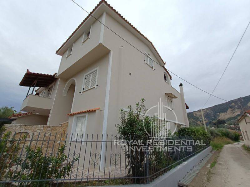 In Xylokastro, Riza, a furnished and fully equipped three-level detached house (ground floor – 1st floor – attic) is for sale, with a total surface area of 246 sq.m. on a plot of 880 sq.m.