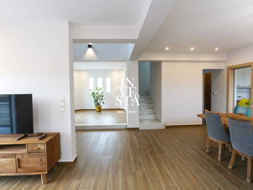 Nea Politeia: Luxurious maisonette - detached house of high aesthetics and quality construction for sale, in Nea Politeia, in a quiet and privileged location. The property has an initial building permit in 2013. Its completion took place in 2024 and has only been inhabited for the last 5 months. The property has a total area of 178.40 sq m. on two levels and also has a semi-basement of 92.50 sq m., built on a plot of 305 sq m. with a facade on three sides. On the ground floor of 93 sq m. are the main living, living room and dining areas, an independent, bright kitchen and a wc. On the first floor of 85 sq m. we find an elegant internal terrace, two spacious and bright bedrooms with wardrobes, a bathroom and the master bedroom with dressing room and private bathroom. The semi-basement of 92.5 sq m. includes the heating area, a storage room with the possibility of use as a gym, office or playground. There is also a separate living room-kitchen area, a bathroom and an additional room, offering the possibility of configuring it into an independent apartment. The house has underfloor heating with LPG, electric roller shutters on the ground floor, an internal alarm with infrastructure for cameras, as well as three chimneys with the possibility of installing a fireplace in the living room on the ground floor, in the master bedroom, and in the living room-kitchen in the semi-basement. Outside there is an outdoor parking space with a private garage door, while the rest of the garden can be configured into a wonderful area for relaxation and recreation. This is an excellent property, ideal for families looking for comfort, quality and privacy, in a quiet, but at the same time privileged area. Another excellent proposal offered to you exclusively by INVESTA Real Estate – Larissa Real Estate Agency. Responsible Partner: Nadia Dourou www.investa.com.gr follow us: www.facebook.com/investaestate www.instagram.com/investa.real.estate Do you know the value of your property? Contact us today for a FREE valuation!