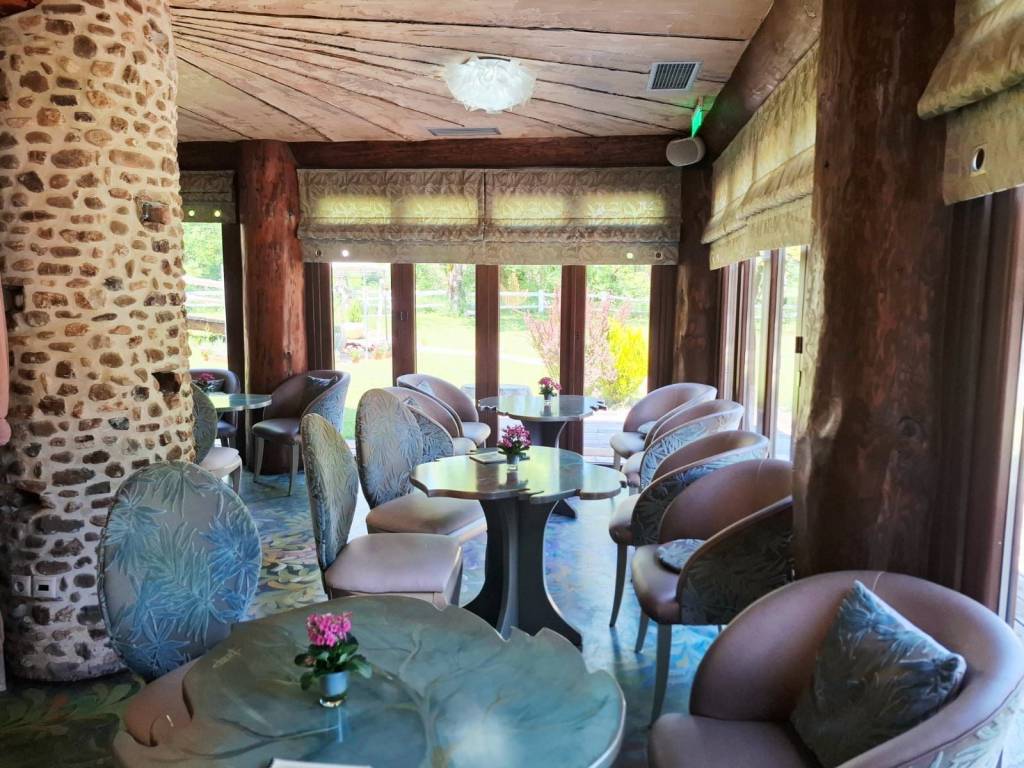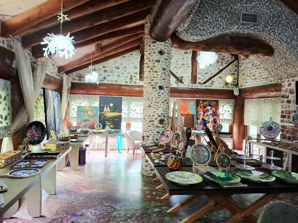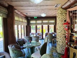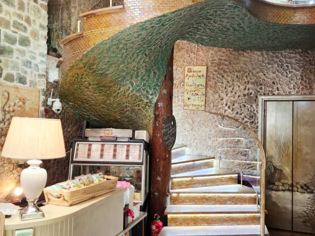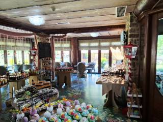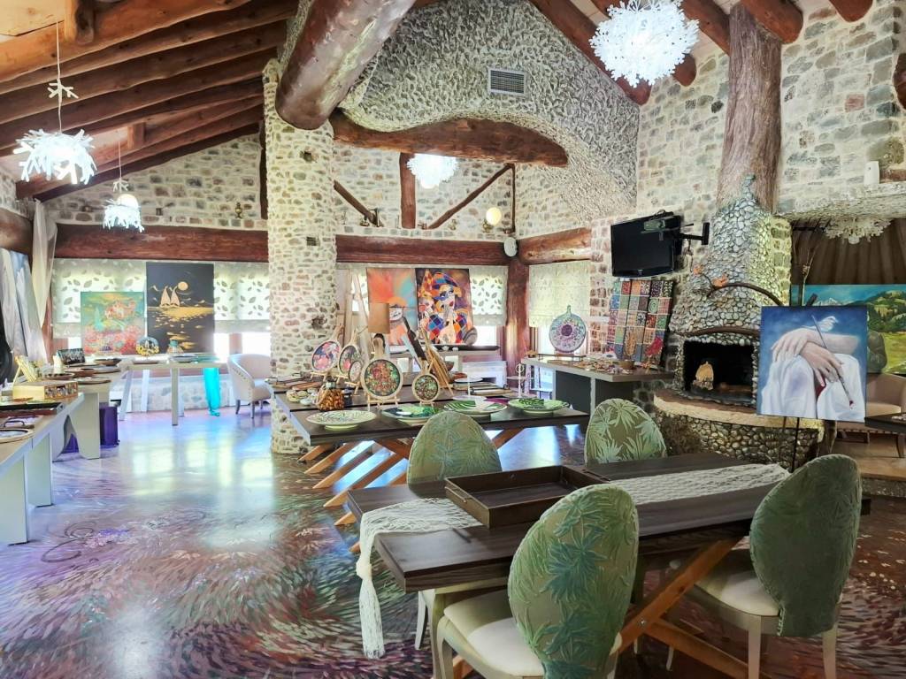 Καλώς ήρθατε σε ένα μοναδικό και υψηλής αισθητικής χώρο σε μια υπέροχη τοποθεσία όπου η τέχνη συναντά τη φύση, όπου ο καμβάς των χρωμάτων και των πινέλων ενώνεται με το καμβά του φυσικού τοπίου, όπου το πνεύμα και η ψυχή δίνουν τέρψη στο σώμα. Πρόκειται για ένα ακίνητο, επαγγελματικός πολυχώρος που έχει άδεια λειτουργίας ως εστίαση και καφέ, κόσμημα της περιοχής που δένει αρμονικά με το φυσικό περιβάλλον. Βρίσκεται 7 χλμ από το Καρπενήσι, σε αγροτεμάχιο εμβαδού 3.374 τμ, κατασκευής 2011. Η συνολική επιφάνεια των κυρίων χώρων είναι 302 τμ και αποτελείται από 2 κτίρια, το κτίριο Α’ με ισόγειο 30 τμ και βοηθητικό χώρο υπογείου 63 τμ και το κτίριο Β’ με με ισόγειο 152 τμ και 1ο όροφο 120 τμ περίπου. Το κτίριο Α’ βρίσκεται μπροστά στον κόμβο και δημιουργήθηκε με την λογική ότι μπορεί να χρησιμοποιηθεί ως κατάστημα mini market, ταχυφαγείο και εργαστήρι παρασκευής διαφόρων προϊόντων. Προς το παρόν λειτουργεί ως αποθήκη. Το πλεονέκτημα είναι ότι βρίσκεται πάνω στον κόμβο και μέσα στο χώρο στάθμευσης, εξυπηρετώντας άμεσα χωρίς να απομακρύνεται κάποιος από τον κεντρικό δρόμο και ταυτόχρονα χωρίς να σταθμεύει πάνω σε αυτόν. Σημειώνεται ότι δεν υπάρχουν ανάλογα σημεία με τέτοιες δυνατότητες στη περιοχή και στον συγκεκριμένο οδικό άξονα. Το ισόγειο του κτιρίου Β’ λειτουργούσε ως καφέ και ο 1ος όροφος ως χώρος εστίασης. Στη παρούσα φάση το ισόγειο λειτουργεί ως γλυκοπωλείο – καφέ και το 1ος ως έκθεση ζωγραφικής. Ο χώρος του κτιρίου Β’ είναι διαμορφωμένος έτσι ώστε στον 1ο όροφο να λειτουργεί το κυρίως εστιατόριο με ανεξάρτητη είσοδο εξωτερικά, εφόσον χρειαστεί, για εκδηλώσεις όπως γενέθλια, πάρτι, βαφτίσεις και άλλα που εξυπηρετούν χώροι εστίασης. Υπάρχει επιπλέον και ένας εσωτερικός μικρός παιδότοπος για να απασχολούνται παιδιά και ένα μικρό δώμα για την εξυπηρέτηση του προσωπικού με τουαλέτα. Στον εξωτερικό χώρο και πίσω από το κατάστημα, κάτω από τα πλατάνια μπορεί να λειτουργεί χώρος προς εστίαση και εκδηλώσεις όπως και παιδική χαρά. Στο κτήμα υπάρχει η δυνατότητα να γίνουν γάμοι και άλλου είδους εκδηλώσεις με χωρητικότητα περίπου 120 άτομα στον 1ο όροφο και 60 στο ισόγειο του κτιρίου Β’, ενώ δύναται να εξυπηρετήσει πάνω από 200 άτομα. Το ακίνητο είναι κατασκευασμένο με δέντρα από τα δάση της Ευρυτανίας και πέτρα που είναι φερτή ποταμίσια ύλη προερχόμενη κατά την εκσκαφή. Όλη η κατασκευή είναι χειροποίητη, τα δέντρα έχουν ανοίξει, έχει αφαιρεθεί ο πυρήνας τους και έχει τοποθετηθεί σίδερο και μπετόν στις κολώνες και τα δοκάρια του μεγάλου κτηρίου. Η πέτρα έχει χρησιμοποιηθεί για το χτίσιμο των τειχών με πλάτος περίπου 80 εκατοστά, ενδιάμεσα των οποίων έχει προστεθεί ειδική μόνωση. Η θεμελίωση του κτιρίου Β’ είναι RADIE ενώ στο Α’ υπάρχει υπόγειο με ράμπα εισόδου. Με παρόμοιο τρόπο έχει κατασκευαστεί και το κτίριο Α’, ενώ εσωτερικά έχει προστεθεί και μόνωση τύπου μανδύα. Τα δέντρα στο κτίριο Α’ είναι συμπαγή και στη στέγη του έχουν τοποθετηθεί 6.000 περίπου χειροποίητες πεταλίδες μαρμάρου που έχουν βιδωθεί πάνω στην ξύλινη στέγη κατασκευασμένη από ατόφια δέντρα ελατοπεύκης. Η στέγη του κτιρίου Β’ είναι από 91 συμπαγή δέντρα που δημιουργούν στέγαστρα καθώς περνάνε έξω από τους τοίχους, συμπαγωποιημένο καλάμι (THACHEK) με βαρίδια στους κορφιάδες κατασκευασμένα από πέτρα και περιμετρικά του ορόφου έχουν χτιστεί ζαρντινιέρες για λουλούδια και φυτά. Τα κουφώματα είναι 