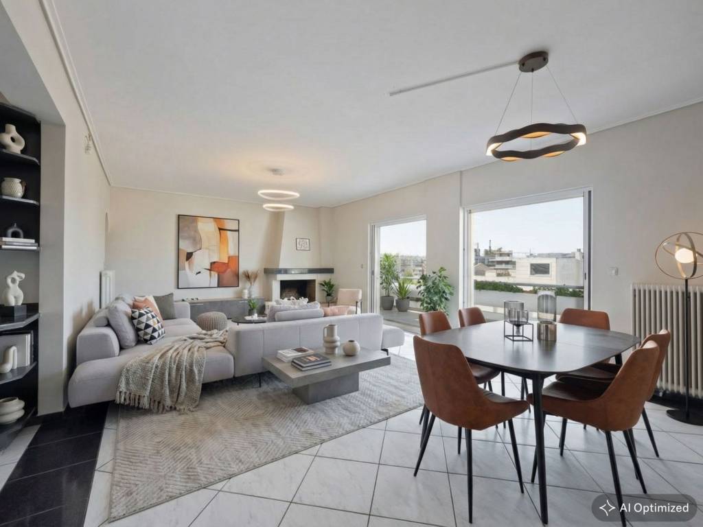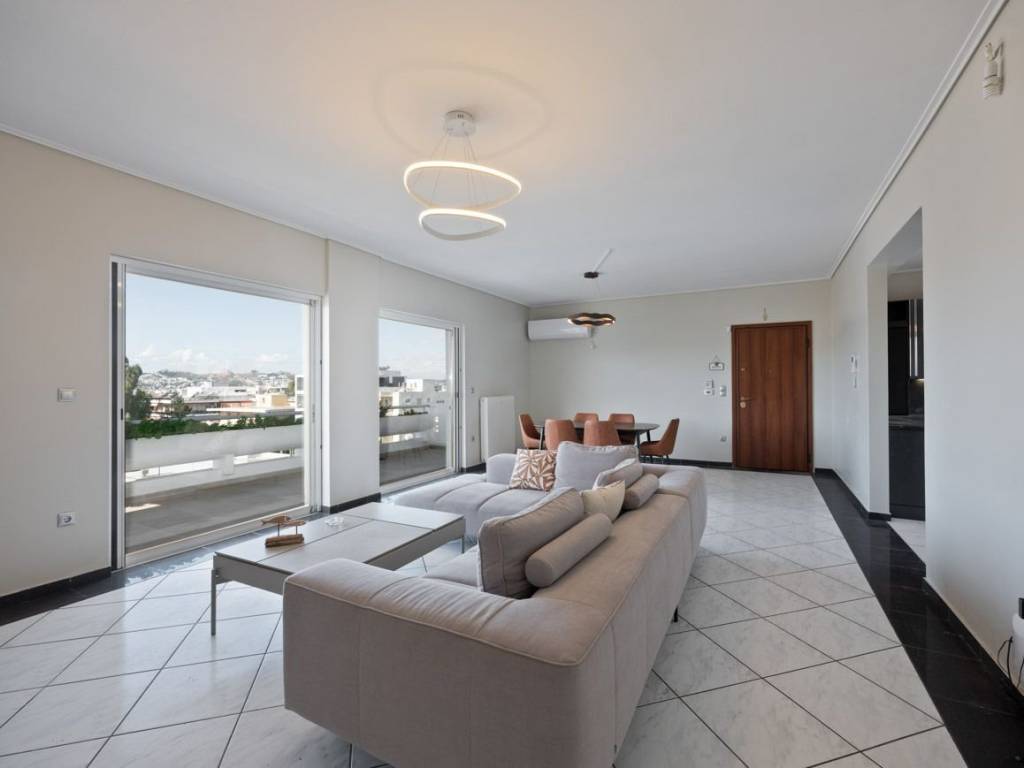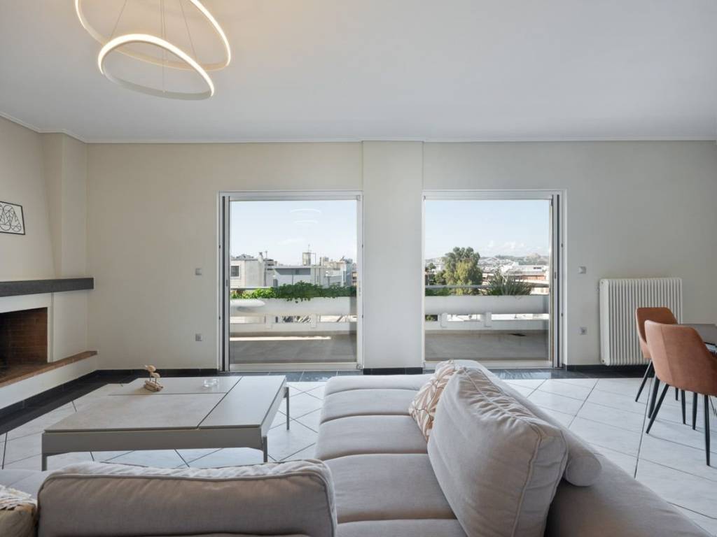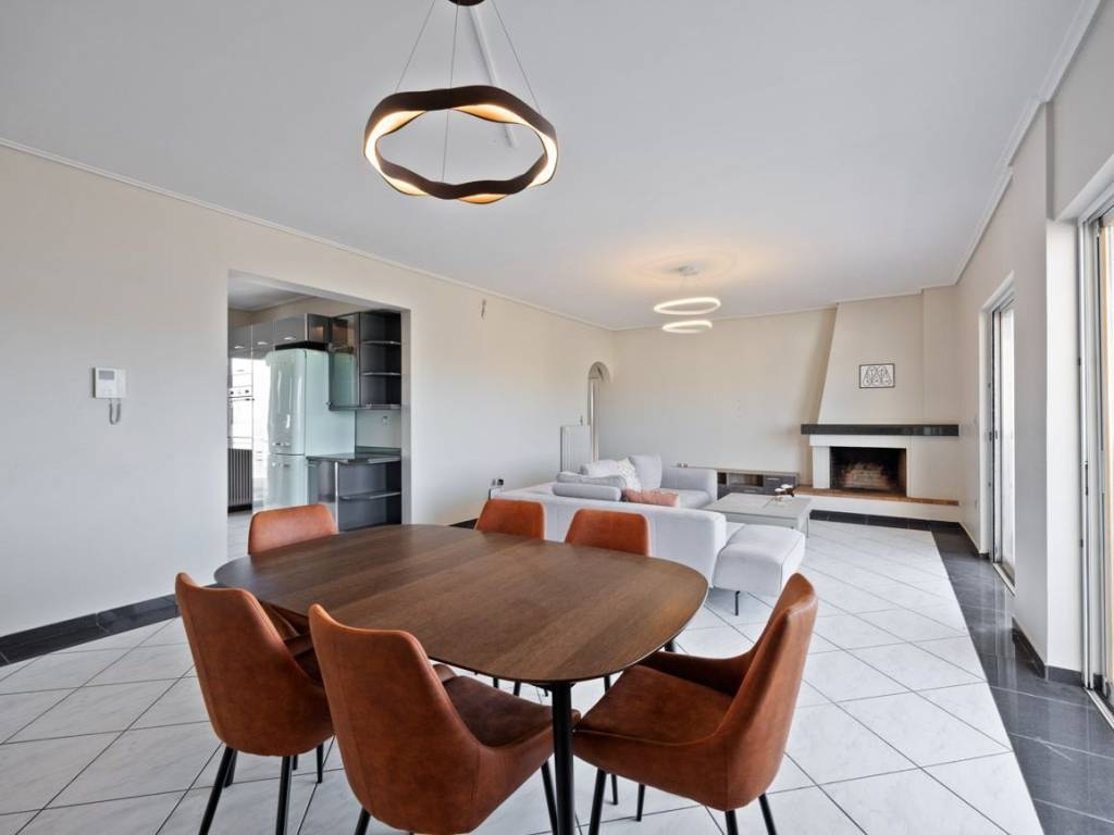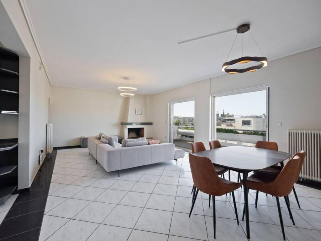 In an apartment building constructed in 1989 in Halandri, we find this 2022 renovated 113 sq.m. penthouse apartment on the 5th floor, which can meet the needs of a modern family that requires comfort and functionality. It consists of a spacious and bright living room with fireplace, that leads to a comfortable balcony with a view of the horizon, a closed kitchen, three comfortable bedrooms with plenty of closets and access to balconies, one bathroom, and a WC. Additional features: independent oil heating, solar water heater, awnings, air conditioning, alarm system, security door, an open parking space and spacious communal garden around the perimeter of the building. The property is in a very convenient location, as it is close to Attiki Odos, public transport, and schools in the area. It is an ideal choice for families and those seeking comfort and easy access to the city center. Chalandri is one of the Municipalities of Attica, in the NorthEast of the Athens Basin, at the Southwest foothills of Mount Penteli. The area is known for its developed market, with many shops located in the pedestrian center of the city and businesses in Sidera Halandriou and Kifissias and Penteli Avenues to attract staff both supra-local and from the wider Municipality. The historic center is covered by extensive sidewalks and bicycle paths. Modern public and private schools and kindergartens serve the needs of residents. Local roads, Kifissias and Mesogeion avenues, as well as Attiki Odos, the Metro, the Suburban Railway and the Public Transport serve the daily movements in every direction within the Basin. It is noteworthy that it is the only municipality that at a distance of 2km from each part, the citizen can be served by one of the 5 metro and suburban stations within its boundaries. Finally, the presence of public hospitals and quality private clinics nearby support the health of residents. Chalandri is a large and modern city, but nevertheless maintains cohesion around the residential core in the heart of the municipality. Chalandri offers great investment opportunities. Its accessibility and great lifestyle have attracted not only local families but also local and foreign investors seeking a lush lifestyle, attractive yields, or their family residence in a trendy spot of a European capital.