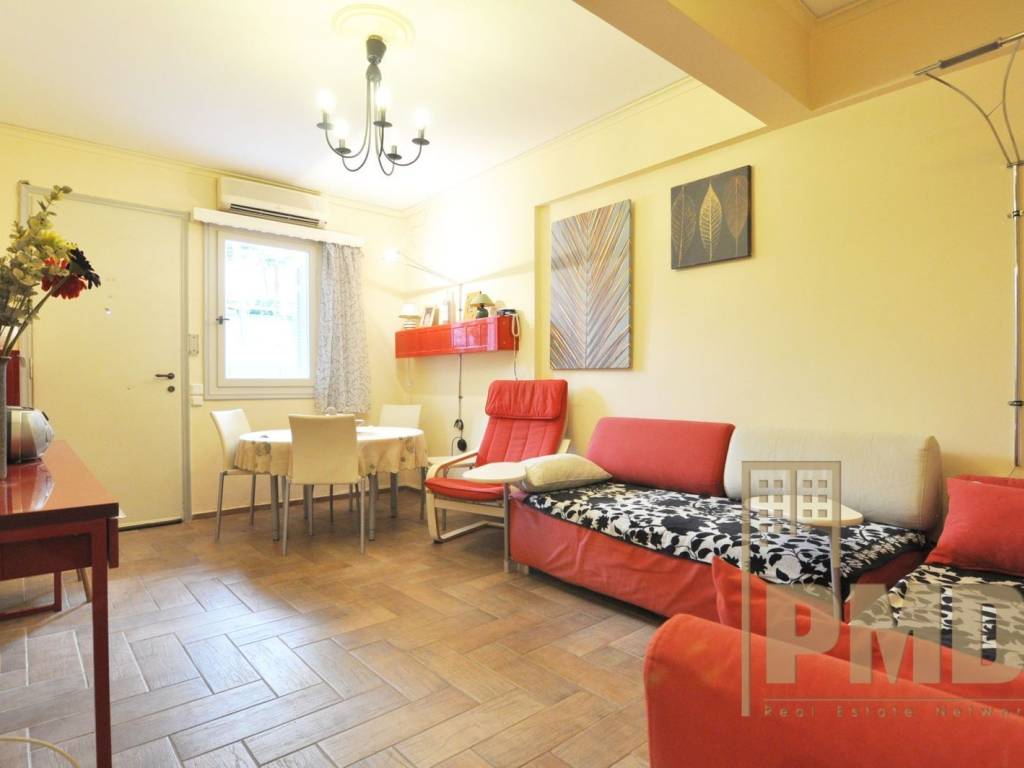Glyfada, furnished apartment 44 sq.m., semi-basement, 1 bedroom, 1 bathroom, living room, separate kitchen, air conditioning and large outdoor space. Close to the beach (350m), public transportation and shops.