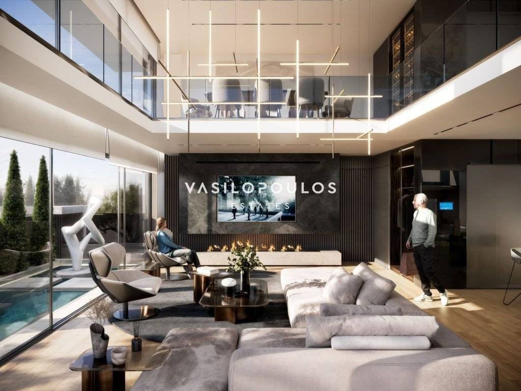In a prime location in the center of Kifisia and its commercial district, a luxurious under-construction detached house of 424 sq.m. is offered for sale, energy class A+, featuring contemporary architecture and high construction standards. The luxury detached house in Kifisia is developed over four levels. The ground floor forms an impressive reception area with a double-height living room, kitchen and dining area with fireplace. The first floor includes an office area and an additional sitting room with a veranda overlooking the pool, while the second floor hosts three master en-suite bedrooms with walk-in closets, and the third floor features one more master en-suite bedroom and a roof garden with panoramic views, BBQ and bar. The basement comprises a six-car garage, laundry room, storage and auxiliary spaces, as well as a playroom with gym and lounge area, with natural light and ventilation and views to the garden. The residence also features an outdoor overflow swimming pool, underfloor heating with heat pump with individual room autonomy, and a smart home automation system with remote control capability. This is an exceptional, contemporary and high-aesthetic detached residence in Kifisia, ideal for family living, combining architectural excellence, top-tier amenities and a prestigious location in the northern suburbs of Athens.