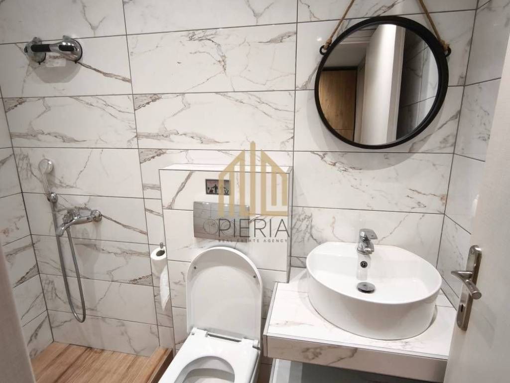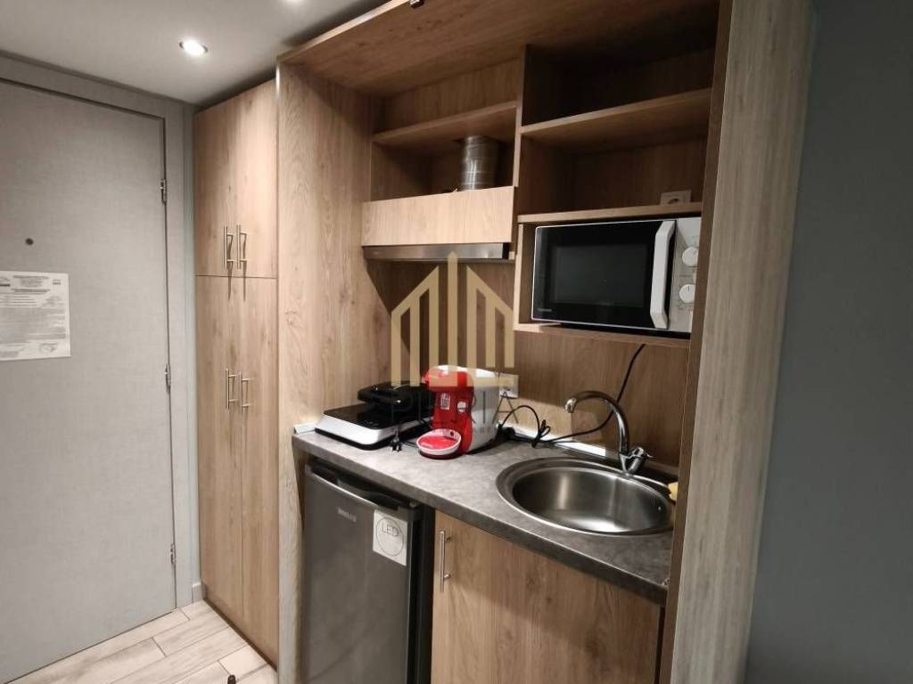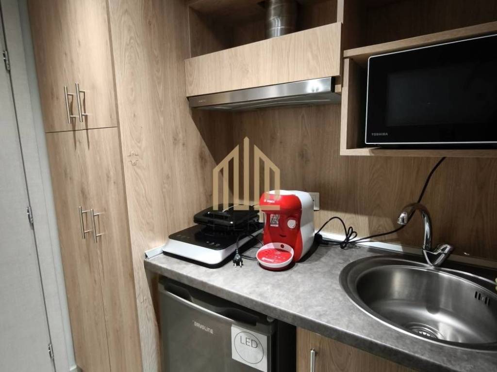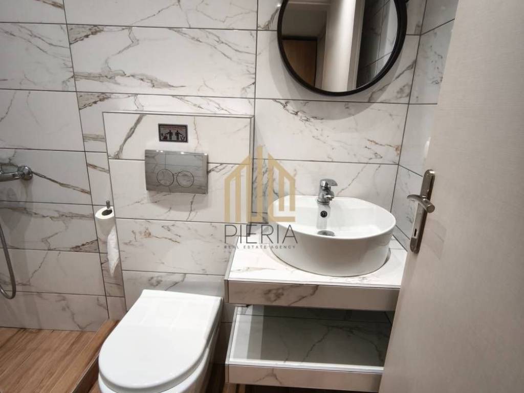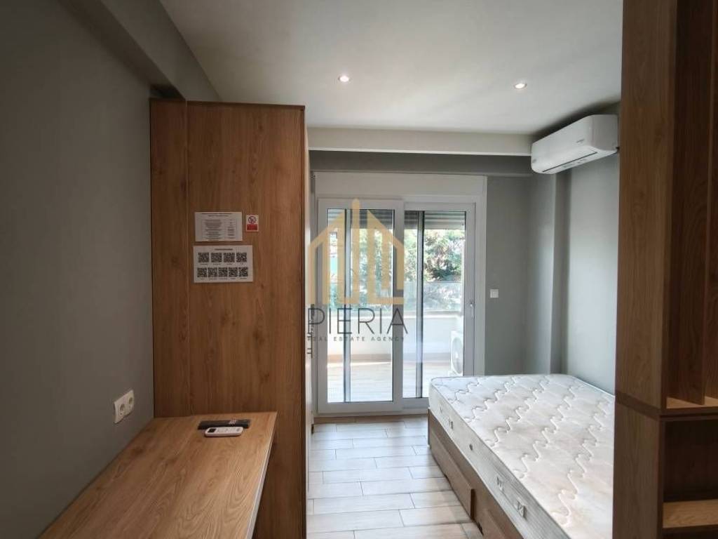 Katerini, Ethnikou Stadiou - Chiradika: newly built Studio for rent 30 sq.m. luxury, frontage on the 2nd floor with electric heating with 9A air condition inverter, in a 4-storey building with a thermal facade. It consists of a single room with a partition and 1 bathroom/WC. It is furnished, equipped, with electrical appliances (32" smart TV, bed, wardrobe, refrigerator, office), built in 2022, painted, near a gas station, coffee shop, bakery, souper market and has an open view, aluminum frames, security door, energy class A, tile floors, screens, cable TV, solar water heater. There is ample parking right below and a wonderful communal courtyard. There are security cameras in all the communal areas. The communal expenses include 1) the provision of wired and wi-fi internet with a speed of 500mbps (repeater) on each floor of the 4-storey building. 4) the cleaning of the communal areas 5) the use and maintenance of the elevator. 6) the use and maintenance of the communal washing machine. 7) the coverage of civil liability in the common areas of the building. The studio is exclusively for: Students, Teachers & Doctors. Price 350€ |