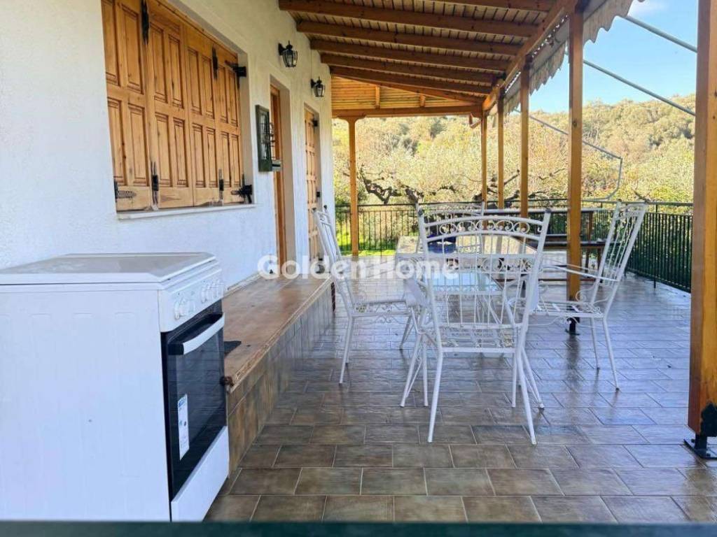 Kefales area, a beautiful detached house of 110 sq.m. with 3 bedrooms located 200 meters from organized beaches near the well-known Pefki area. It is an elevated ground floor with an attic overlooking the sea and also has a large semi-basement storage room with windows. It is surrounded by large verandas, has awnings and is fully furnished with electrical appliances.For heating it has a boiler, for hot water there is a solar water heater and air conditioning for cooling in the summer. There is a surrounding area of ​​3.5 acres with very well-kept fruit trees that offer shade and coolness and plenty of paved streets that have lighting. There is also parking for two cars. For Sale, detached, Full Bathrooms: 2, Half Bathrooms: 2, Living Area: 110 Sqm, Rooms: 3, Year Built: 1999, Holiday Home, Air Conditioning, View, Balcony, Furnished, Fireplace, Garden, Internal Stairs, Playroom, Alarm, Storage Space, Garage, Floor Number: Ground Floor, Pets Allowed, Satellite Receiver, Attic, Renovated, Awning, Airy, Bright, Kitchens: 1, Joinery: Wooden, Floor Type: Marble, Lot Size: 3600 Sqm, Levels: 2, Heating Controller: Autonomous, Heating Medium: Petrol, Zoning: Residential, Preserved, Night Power, Energy Class: E, Renovation Year: 2020, Balcony Area: 50, Distance Sea: 150