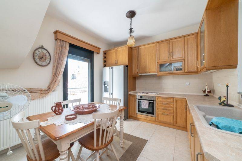 On the 1st level, the maisonette features a bright and spacious open-plan living area, where the large fireplace dominates the living room space, creating a cozy atmosphere for the cold winter days. This area is ideal for daily family life and social gatherings. The kitchen is separate and autonomous, communicating with the living room through a large internal window. It is fully equipped and has direct access to a large outdoor balcony, perfect for an afternoon coffee or relaxation while enjoying views of the surrounding area. On the same level, there is a stylish and fully functional bathroom to serve the needs of guests and residents. On the 2nd level, there are three comfortable bedrooms, designed for ultimate privacy and tranquility. The two front bedrooms feature large balcony doors leading to a spacious balcony with a view, ideal for enjoying the sun and the coolness of summer. The third bedroom, at the back, has its own small balcony, offering a more private corner for rest. The bathroom on this floor is spacious and elegantly decorated, providing all the necessary amenities for everyday use. On the 3rd level, the internal staircase leads to the attic, a unique space full of potential. With abundant natural light and comfort, it can be used as a playroom, personal office, library, or relaxation area.