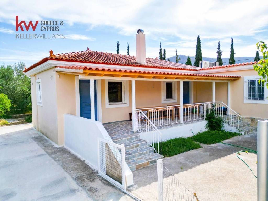 There are homes you choose with your mind. And there are homes you choose with your heart. In a quiet, green corner of Argolida, near Kiveri, set within a 4,017 sq.m. plot, stands a residence that does not simply ask to be purchased. It invites you to live it. Here, daily life moves at a different pace. Morning light falls gently over the trees. The breeze passes softly through the olive groves. The sounds are natural, calm, authentic. This is not isolation. It is the feeling of having your own space. The freedom to think, to rest, to breathe. Your eyes open to green landscapes. To the land. To nature changing with the seasons, reminding you that life does not need to rush in order to be beautiful. The house, approximately 120 sq.m., is of newer construction and thoughtfully designed to host real moments. The open-plan kitchen flows harmoniously into the bright living and dining area. The wooden ceiling and the elegant fireplace create warmth and character. Two spacious bedrooms, a comfortable bathroom and an additional WC complete a home that does not impress superficially, it wins you over gradually. And there is something more. This is a home built with quality materials and solid construction, something you immediately sense the moment you see it. In the way it stands on the land. In the details. In the feeling of stability and care it radiates. No explanation is needed. You simply feel it. The large plot is not just about square meters. It is freedom. It is privacy. It is the possibility to plant, to create, to expand, to dream. There is potential for additional building, but perhaps the most important potential is the opportunity for a different way of living. And yet, life is never far away. Within just a few minutes you are in Kiveri, and with easy access to Nafplio and Astros. You enjoy the calm you seek, without being disconnected from what you need. This home is not for everyone. It is for those who understand that quality of life is not measured only in square meters, but in moments. If you could choose a home that makes you feel calmer, more grounded, more yourself… would you recognize it when you see it? Do not hesitate to contact us for further information. We are always at your disposal! KW FOR YOU, 27 Sidiras Merarchias, Nafplio, Tel.: +30 27520 26767, kwforyou@kwgreece.gr, www.kwforyou.gr. Property manager: Christos Koutroufinis. *Attention, for the indication of the property it is necessary to show your identity card and your VAT number according to the Law 4072/11-04-2012 (Government Gazette 86 A).