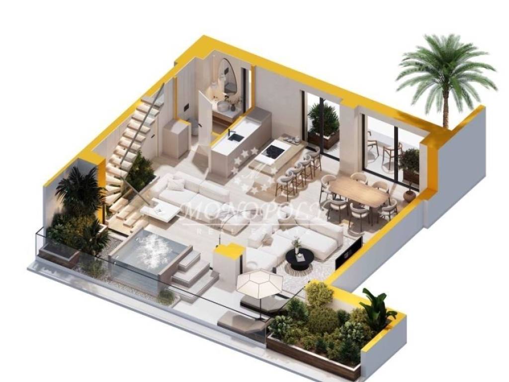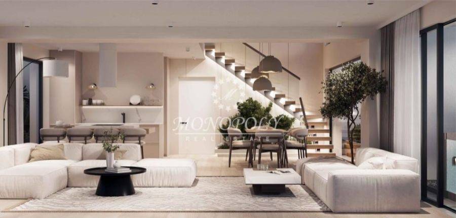 Glyfada - Ano, 2-level Maisonette, 135 sq m., 4th - 5th floor, penthouse, airy & bright, with mountain and sea views, luxurious construction of 2026, with an estimated delivery date of December 2026, energy class A+. On the 4th floor is the living room with open kitchen and dining room, 1 WC and a large terrace with an outdoor pool. On the 5th floor are 3 bedrooms (1 master), 2 bathrooms and 1 terrace. It has autonomous heating, underfloor, with heat pump, air conditioning, solar, double glazing, security door, elevator, basement storage and 1 underground parking space in the parking lot. This is a very good construction, with excellent quality materials. It is located near the main road, Gounari, with bus stops, shops, restaurants, schools, parks and all the amenities offered by the area. *Property location on the map can be relevant and not accurate. *ID or Passport and TAX number are required for visiting the property, from each person that will be present.