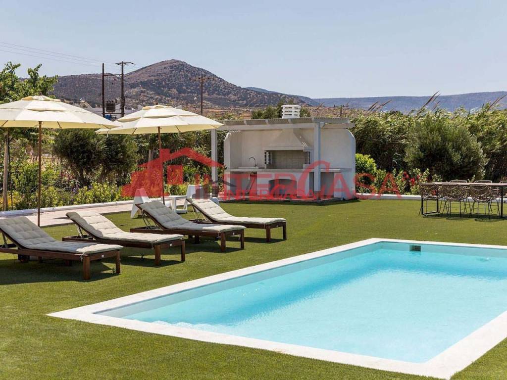 Property Code: 1042 - FOR SALE in Naxos Naxos - Chora 950.000 € . This 217.00 sq. m. consists of 3 levels and features 5 Bedrooms, The property also boasts Heating system: Air conditioner, tiled floor, view of the , Window frames: Aluminium, , a storage unit sqm, garden, fireplace, swimming pool, insect screens, double-glazed windows, solar-powered water heater, BBQ, playroom, fenced. The building was constructed in 2020 Plot area: 2046 s.q. . Building Energy Rating: C
