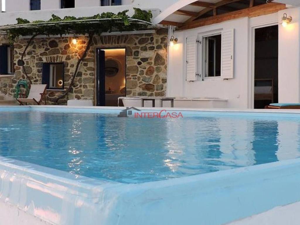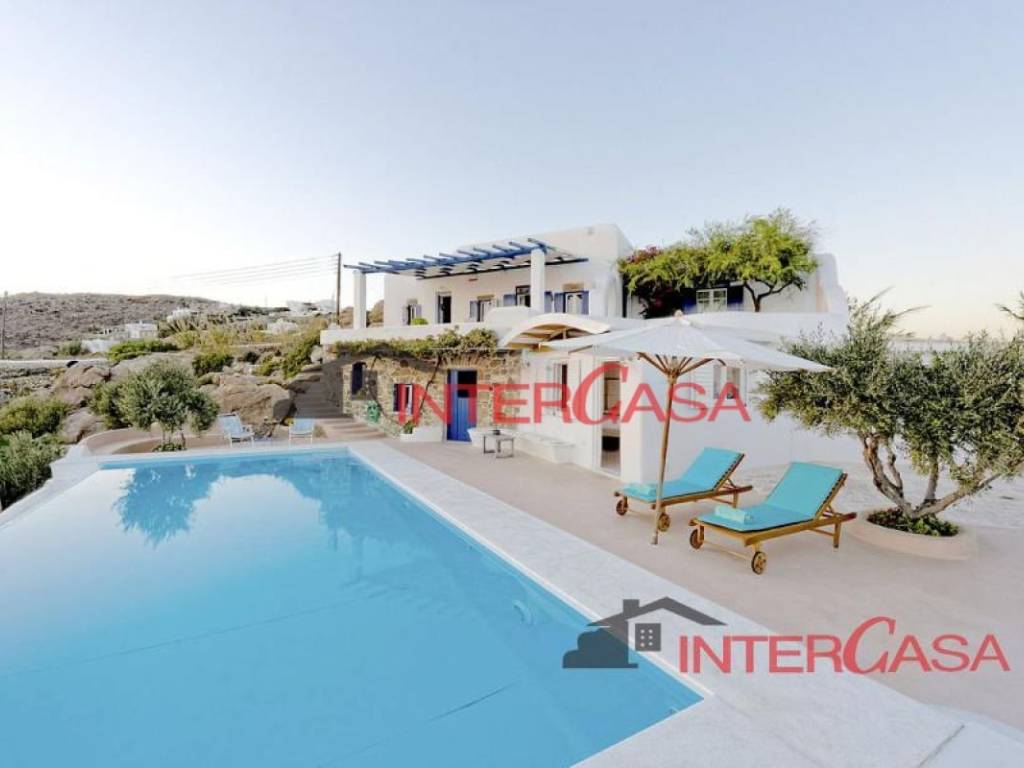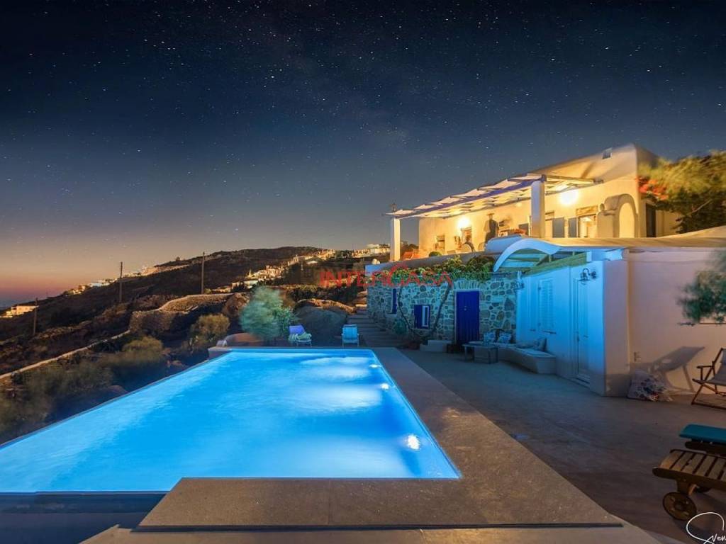 Property Code: 1330 - FOR SALE in Mykonos Ornos 3.500.000 € . This 235.00 sq. m. consists of 2 levels and features 4 Bedrooms, The property also boasts Heating system: Air conditioner, tiled floor, view of the , Window frames: Wooden, a storage unit sqm, garden, fireplace, swimming pool, insect screens, solar-powered water heater, BBQ, fenced. The building was constructed in 2015 Plot area: 4530 s.q. . Building Energy Rating: E