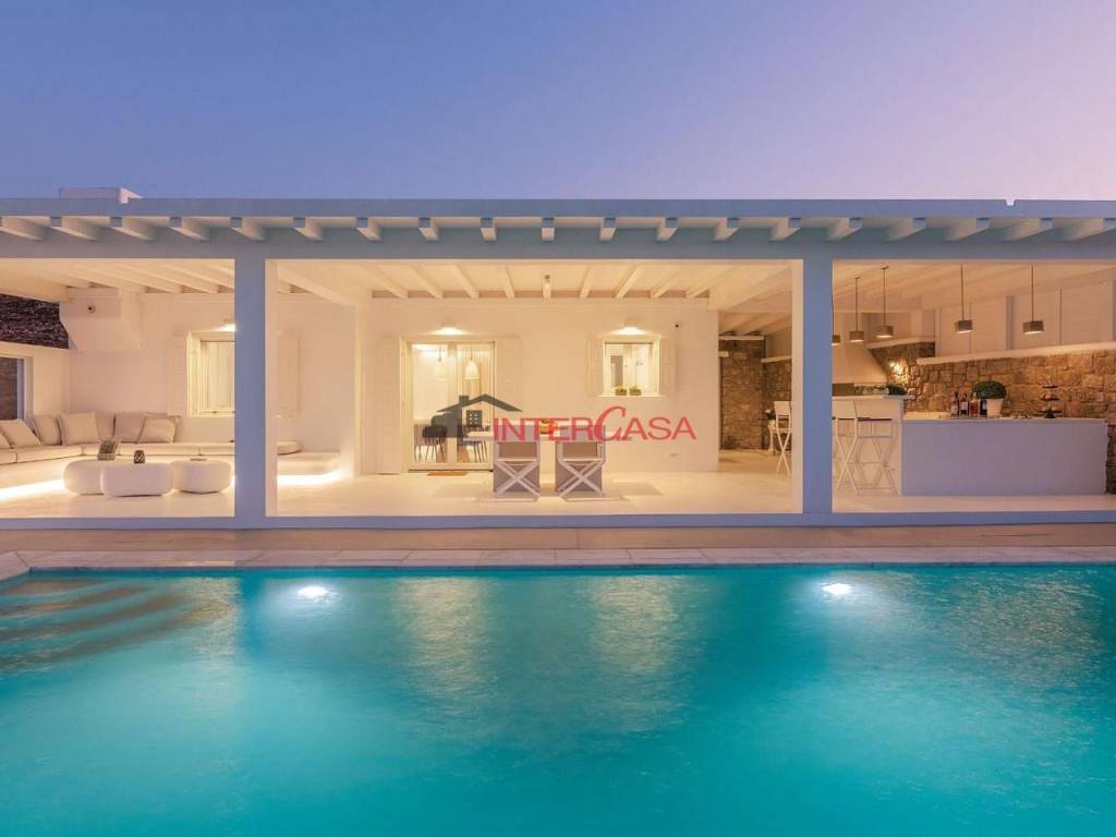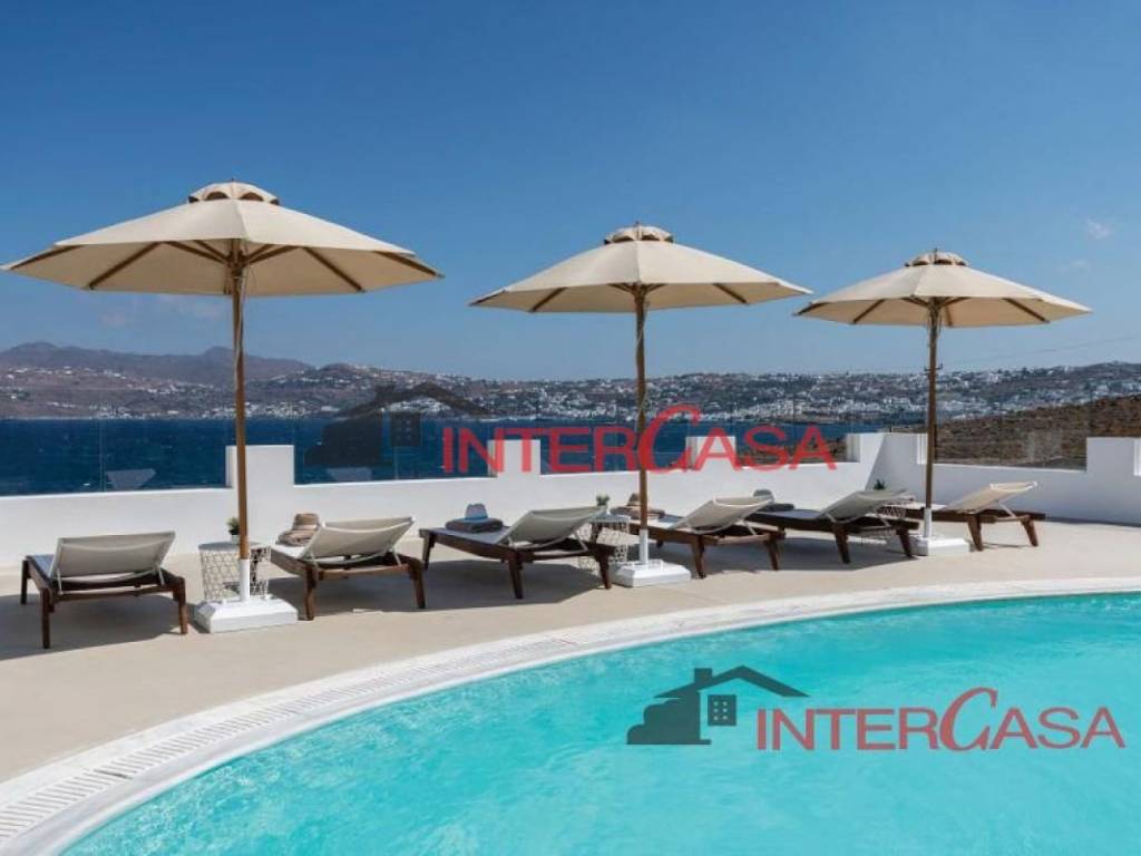 Property Code: 1316 - FOR SALE in Mykonos Main town - Chora 10.500.000 € . This 1120.00 sq. m. consists of 3 levels and features 12 Bedrooms, The property also boasts Heating system: Air conditioner, tiled floor, view of the , Window frames: Aluminium, , a storage unit sqm, garden, fireplace, swimming pool, insect screens, double-glazed windows, solar-powered water heater, BBQ, playroom. The building was constructed in 2022 Plot area: 5500 s.q. . Building Energy Rating: B