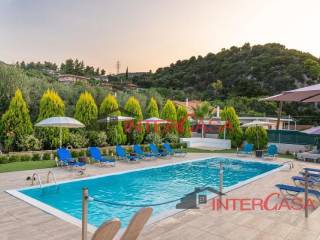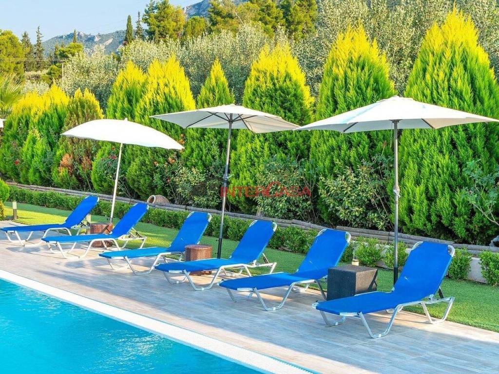 Luxury three storey villa, 257 sqm, 12 bedrooms, 8 bathrooms, 3 WC, fully eqquiped kitchens, huge balconies, indoor gym and jacuzzi, sound systems, massage room, TVs/WiFi, 4 BBQs, outdoor pool bar, alarm system with CCTVs, ping pong table, 500sqm tennis-basketball court, sea view, private gardens, private pool, in 7000sqm plot.