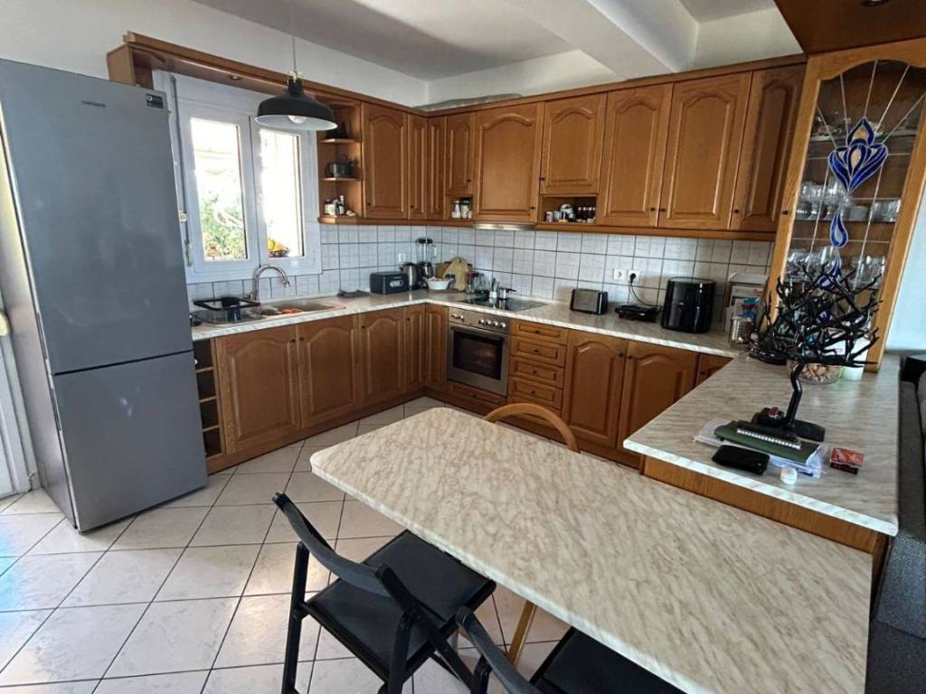 For sale is an excellent 1st floor apartment, built in 2002, with a total area of 133.98 sq.m., in one of the quietest and most sought-after areas of the city. The property has three comfortable bedrooms with wooden floors, there is a prospect for a fourth bedroom-office, a spacious living-dining room and a functional kitchen, a bathroom with a bathtub and a bathroom with a shower as well as a storage room inside the apartment for a washer-dryer. It has a solar and electric water heater, awnings, oil heating, and a stove is also installed. It offers beautiful views, bright spaces and a comfortable layout, ideal for a family. An additional advantage is the exclusive use of space in the attic, offering comfort and practicality in everyday life.