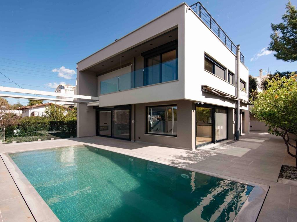 This great property is a combination of a modern architectural design with a quality construction offering amazing natural light to every corner of it! Located at a peaceful area in Vari offers unique tranquillity to its owners combining open and mountain views. Being only 2 min. drive from Varkiza's sandy beaches, fancy restaurants and shopping centre makes it the perfect residence! The villa was built in 2008 with "Smart Home" features and total surface area of 430.82 sq.m. It consists of 4 levels, 3 of which are overground and cover an area of 233 sq.m. and 1 underground of approx. 198 sq.m. All levels communicate with an elevator and an impressive modern staircase. The ground floor includes a bright, spacious living room with an energy fireplace and a dining area, a fully equipped top quality modern kitchen and a master bedroom with ensuite bathroom. The 1st floor offers 3 additional bedrooms (one of which has recently been used as a walk in closet room) with 2 bathrooms and balconies offering amazing open views. The top floor provides 1 additional bedroom with it's own bathroom and balcony which can be used as an office space or guest room. The lower level consists of an amazing playroom, a bar, a laundry room, a spacious maid's room with it's own bathroom next to a great sauna room. Of course, there are independent storage rooms and an autonomous parking area which can accommodate up to 4 cars. The exterior of the house offers a beautiful garden, cozy corners and a great outdoor pool making it an ideal environment for private moments as well as for amazing gatherings with friends and family. The property has underfloor heating with heat pumps, a central cooling-heating system, fully installed alarm-camera systems. Vari: Location and surroundings of this property Location: Vari is an up-and coming suburb in southern Athens, located just 22 kilometers away from the city centre. Unique features: Vari is a premium destination for summer vacations and is home to organized beach facilities, beach bars, restaurants, tavernas and watersports clubs. It still retains its neighbourhood feel and is ideal for raising families. Vari has a lively commercial centre and proximity to supermarkets, banks and boutiques. It also has a vibrant night life with some of the best-known summer clubs. Accessibility: Accessible by bus to the city centre and to Glyfada, the closest commercial hub and just a 20-minute drive away from the Athens International Airport. Investment potential: Like most areas on the Athens Riviera, property prices here will always offer a good return on investment.