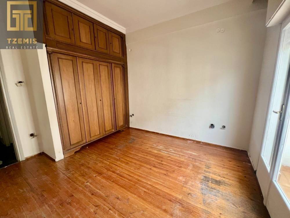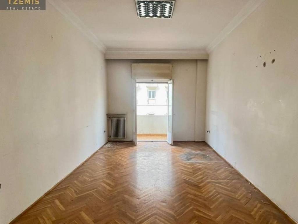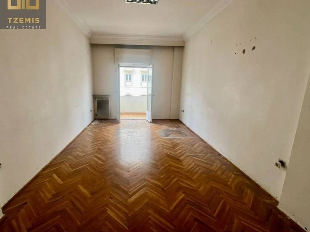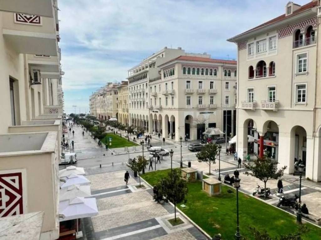 The property consists of 3 rooms, a kitchen, and a bathroom (which will be fully renovated). Additional features include elevator, autonomous natural gas heating, security door, wooden flooring, and three balconies overlooking Aristotelous Street.