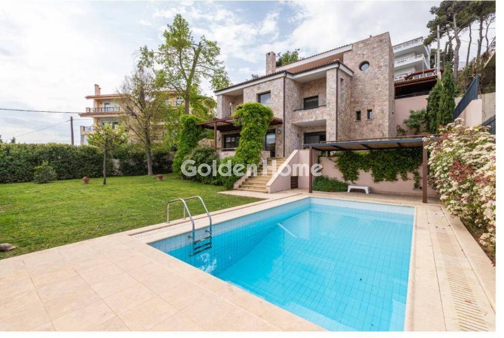 In a prime position between Dionysos and Rodopoli, with unobstructed panoramic views of the greenery and the Athens basin, this impressive 481 sq.m. stone residence is offered for sale, developed over 4 levels on an 840 sq.m. plot, combining contemporary architecture, refined aesthetics, and exceptional functionality in one of the most prestigious and tranquil northern suburbs, known for its natural surroundings, healthy microclimate, safety, and easy access to schools, local amenities, and major road networks. The property features a bright internal atrium that enhances the sense of openness, a spacious open-plan ground floor with living room, dining area, open-concept kitchen with Corian countertops, auxiliary kitchen, and guest WC, highlighted by a central fireplace and large openings that flood the space with natural light while framing the stunning view. The first floor hosts a master bedroom, two additional bedrooms with built-in wardrobes, air conditioning, and alarm system, a bathroom, a dedicated office space, and two balconies, while the second floor offers an additional master suite with a generous walk-in closet and private balcony, ensuring complete privacy. The basement includes a large playroom, a fully equipped guest suite with bedroom and bathroom, and storage areas, while all levels are connected by both an internal staircase and an elevator. The landscaped outdoor area features a beautifully maintained garden, an impressive swimming pool, shaded pergolas for relaxation, and two covered parking spaces, making this residence a true gem that delivers luxury, comfort, and an exceptional quality of life. For Sale, detached, Full Bathrooms: 5, Half Bathrooms: 2, Living Area: 480 Sqm, Rooms: 5, Year Built: 2001, Holiday Home, Air Conditioning, Swimming Pool, View, Balcony, Elevator, Fireplace, Garden, Internal Stairs, Playroom, Secure Door, Solar Water Heating, Alarm, Storage Space, Garage, Floor Number: Ground Floor, For Commercial Use, Pets Allowed, Satellite Receiver, Airy, Bright, Kitchens: 2, Joinery: Aluminium, Floor Type: Wood, Lot Size: 850 Sqm, Accessible For Disabled, Levels: 4, Heating Controller: Autonomous, Heating Medium: Petrol, Road Type: Asphalt, Zoning: Residential, Investment, Night Power, Neoclassic, Energy Class: B, Orientation: Ne, Distance Sea: 1000